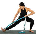 Для растяжки задней поверхности бедра и коленного сухожилия закрепите стопу в петле, ремень возьмите за петли для рук и потяните ногу на себя. Это упражнение можно делать в положении лежа или сидя. Для выполнения упражнения Лягушка лягте на живот, ноги согните в коленях, просуньте стопы в петли, руками возьмитесь за противоположные концы ремня и подтягивайте ноги. Упражнения можно делать, не фиксируя ремень в руках, а закрепив его под дверью.