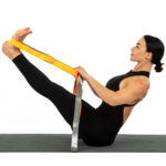 Чтобы растянуть мышцы ног, необходимо лечь на пол, поместить стопу в петлю-ручку и взять в руки другой конец ремня. Затем сгибая руку в локте поднимать прямую ногу вверх с помощью ленты. Также можно опуститься на правое колено, надеть петлю на правую стопу. Правую руку поднять вверх вместе с лентой, а левую – вытянуть вперед, удерживая конец ремня. С помощью такого рычага из рук и ленты подтягивать ногу вверх. Затем проделать то же самое с другой ногой. Растягивать можно не только мышцы ног, но и рук.