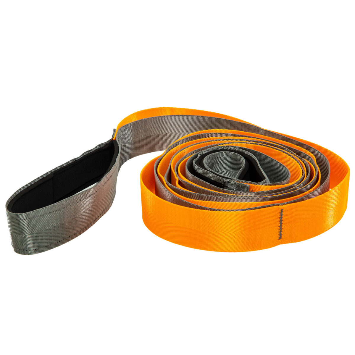 Лента для растяжки – тренажер, который нужен для повышения гибкости тела, может использоваться в фитнесе, танцах, аэробике и силовых тренировках. Он понадобится во время реабилитационного периода после травм. Ремень помогает растянуть все группы мышц, подходит мужчинам и женщинам с любым уровнем физической подготовки (чем меньше петель, тем выше должен быть уровень растяжки), с ним можно заниматься дома и в фитнес-центре, брать с собой на дачу и в другие поездки. Она делает классическую статическую растяжку более эффективной, ею можно пользоваться и во время динамической растяжки.