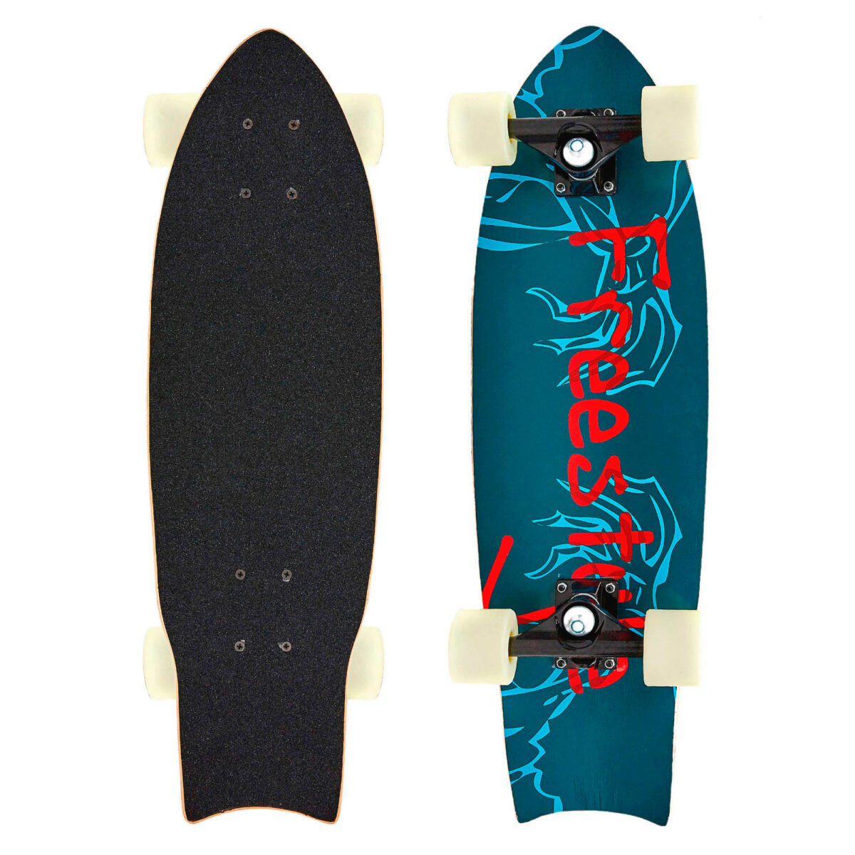 Круизер — вид скейтборда, который предназначен для прогулочного катания по городу. Увеличенная высота дородного просвета позволяет борду преодолевать препятствия на пути. Полиуретановые колеса гасят вибрацию от езды по неровной поверхности.