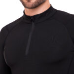 Лонгслив выкроен по фигуре и плотно облегает ее. При пошиве используется технология плоских швов, благодаря чему он не оказывает неприятного давления и не натирает кожу. Для изготовления используется синтетическая ткань — полиэстер. Она сочетает в себе прочность и эластичность, за счет чего и оказывается компрессионное воздействие. Влагоотводящее свойство ткани позволяет телу оставаться сухим и поддерживает его температурный баланс. Благодаря этому лонгслив может использоваться как основная спортивная одежда во время тренировок в любую погоду, а также как базовый слой под верхнюю одежду.