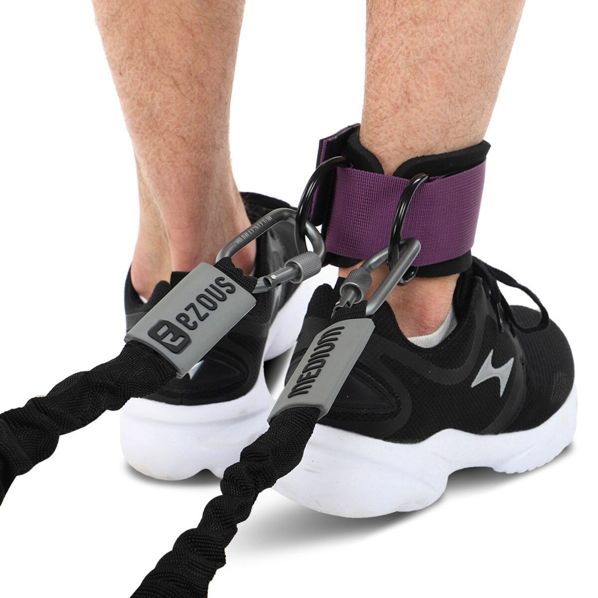 Манжеты для тяги предназначены для увеличения продуктивности тренировок нижней части тела. Они позволяют включить в тренировки упражнения с отягощением. Широкие неопреновые ремешки на липучке регулируются в объеме и плотно облегают лодыжки спортсмена. На них расположены по два прочных стальных кольца D-образной формы. С их помощью манжеты крепятся к тренажеру с необходимым весом для выполнения тяги или махов.