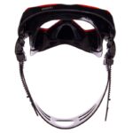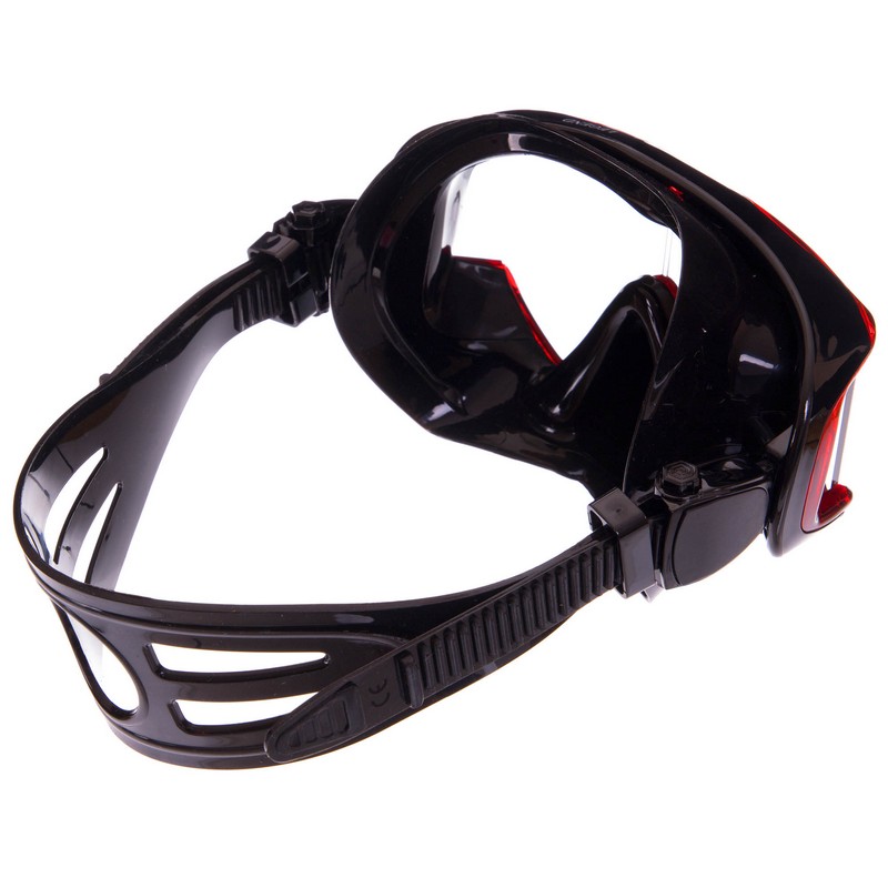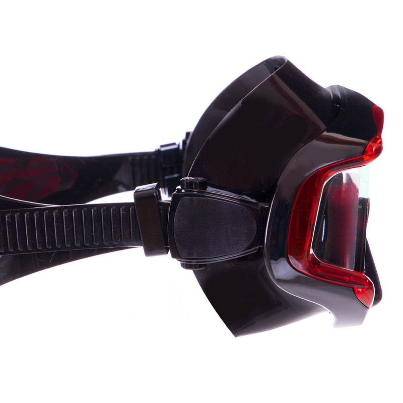 Эластичный ремешок позволяет фиксировать маску максимально прочно, благодаря чему она не пропускает воду. Выступ для носа обеспечивает выравнивание давления в среднем ухе пользователя.