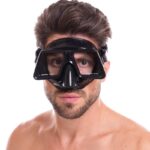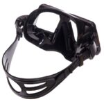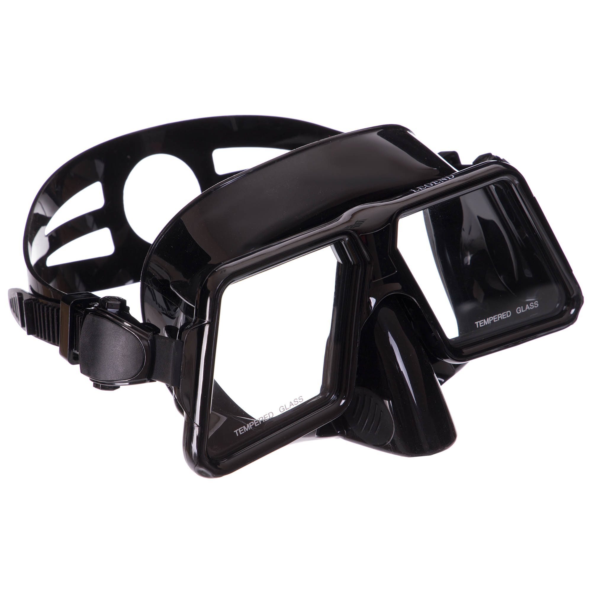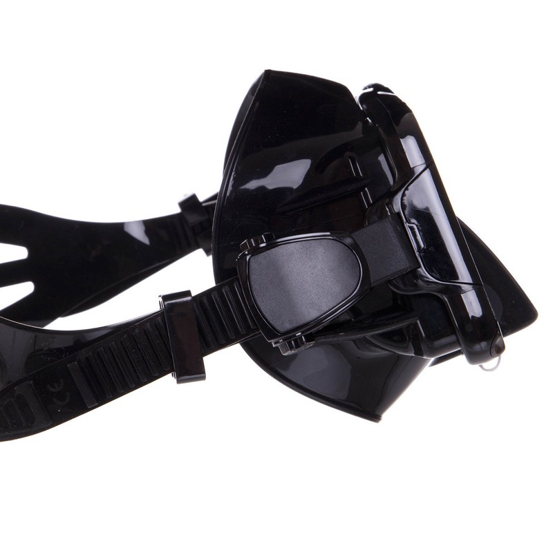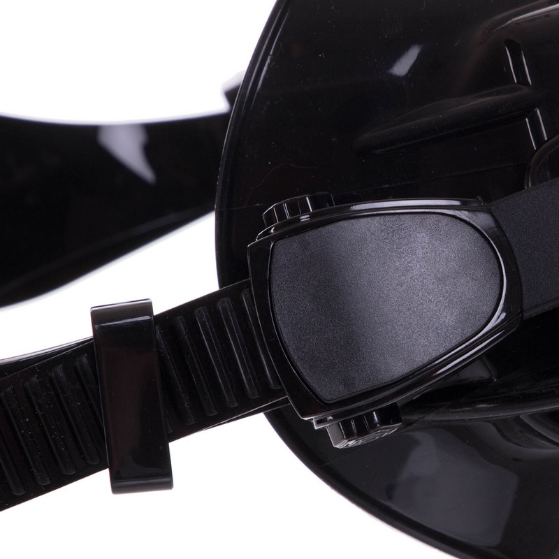 Эластичный ремешок позволяет фиксировать маску максимально прочно, благодаря чему она не пропускает воду. Выступ для носа обеспечивает выравнивание давления в среднем ухе пользователя.