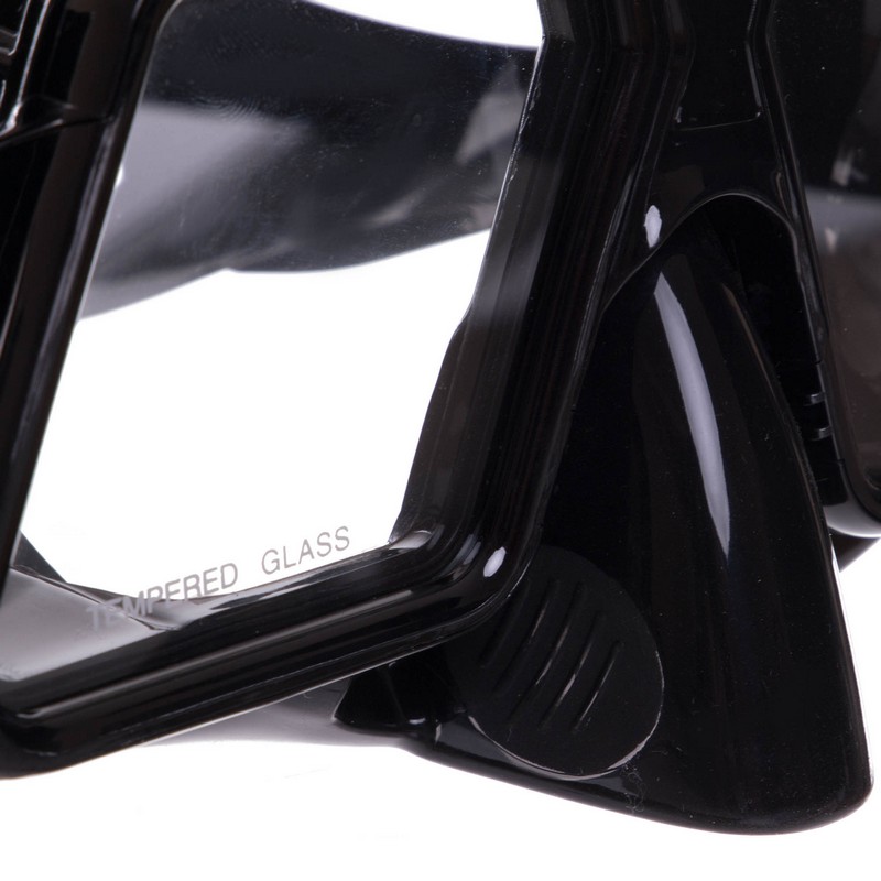 Линзы аксессуара из термостекла позволяют хорошо видеть под водой, обеспечивают широкий круг обзора. Юбка выполнена из силикона, что позволяет изделию прилегать к разным формам лица.