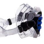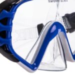 Линза маски изготовлена из термостекла, способного обеспечить пользователю отменную видимость и широкий угол обзора. Она не запотевает и позволяет находиться в воде длительное время.