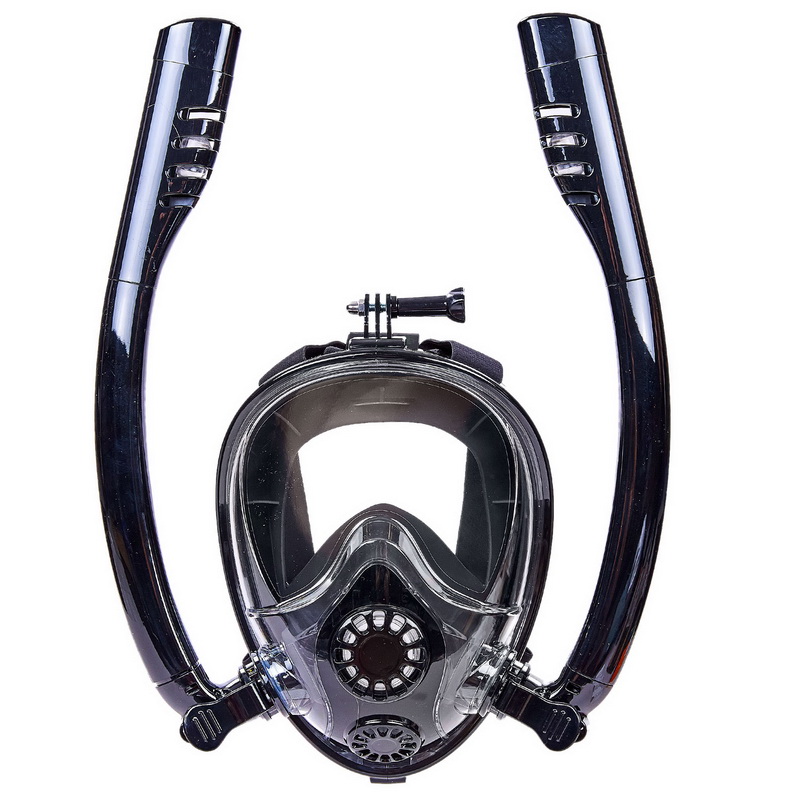 Наличие двух трубок делает дыхание под водой более комфортным. Пользователь может дышать через рот и нос. Система Dry Top предотвращает прохождение через них воды во время ныряния и волн. Но даже если она попала внутрь, достаточно сделать легкий выдох и жидкость вытечет через специальный клапан.