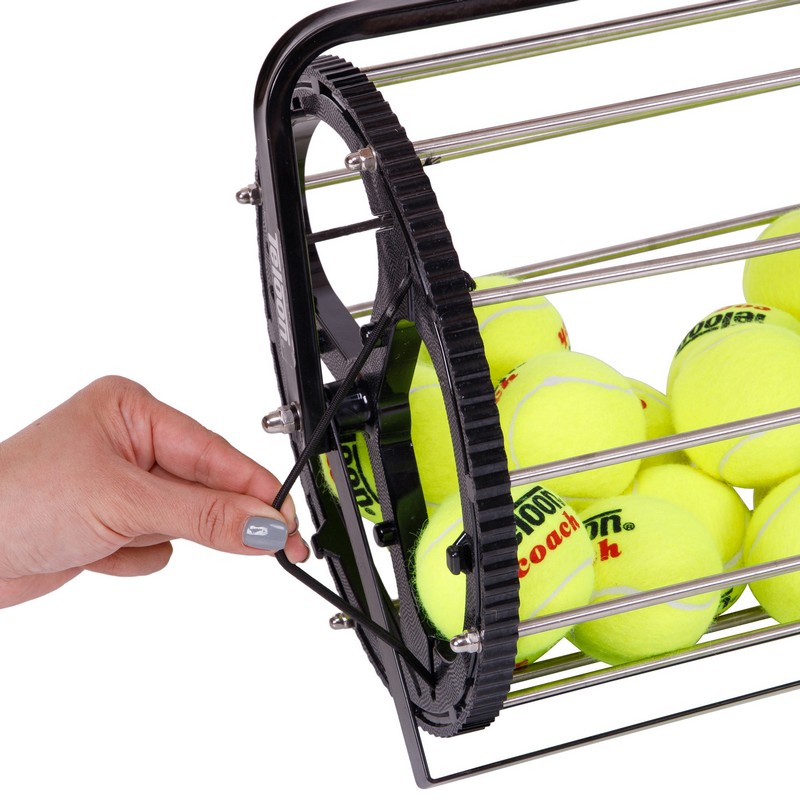 Конструкция состоит из длинной металлической ручки и вращающегося роллера. Длинна ручки регулируется от 55 до 80 см, рукоять покрыта мягкой неопреновой накладкой. Роллер состоит из тонких металлических прутьев, расположенных на таком расстоянии, чтобы при легком нажатии, собирать мячи внутрь роллера. Достать инвентарь позволяют специальные отверстия на боковых частях. Для этого достаточно отодвинуть резиновую заслонку. Благодаря использованию прочных, износоустойчивых материалов, машинка долговечна и надежная.