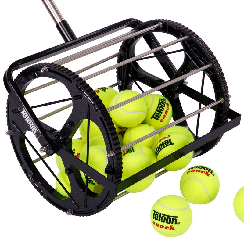 Машина для сбора теннисных мячей TELOON — это удобный ручной роллер, который устраняет необходимость наклоняться за каждым мячом отдельно и возить за собой тележку.