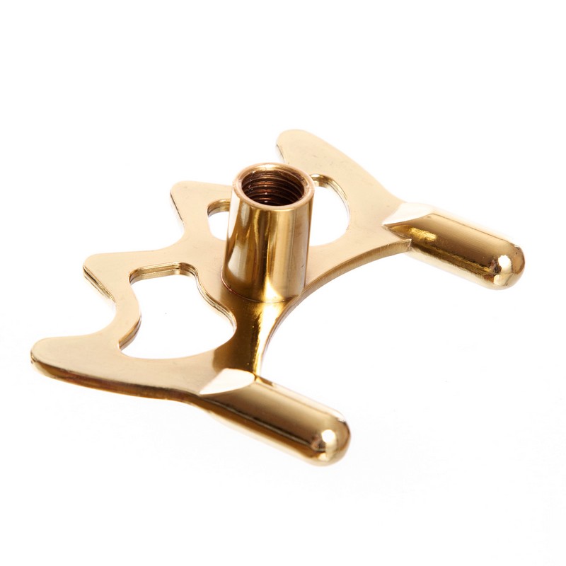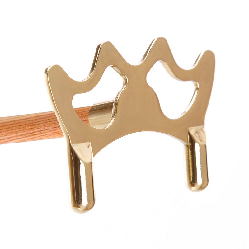 Латунная опора снабжена резьбой, с помощью которой она прикручивается к деревянной ручке. Рукоятка позволяет расположить опору практически в любой точке стола. Латунная конструкция занимает минимум места во время хранения.