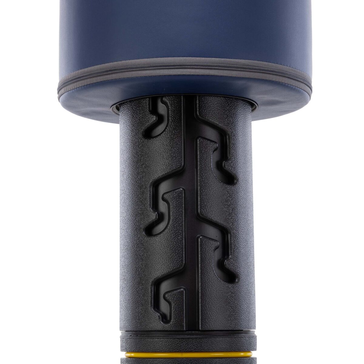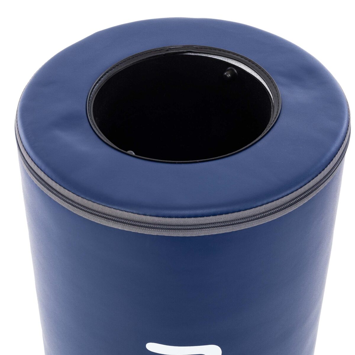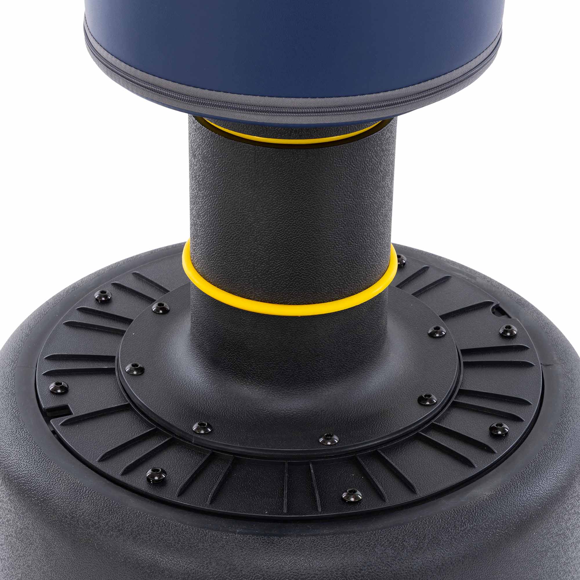 Мешок цилиндрической формы изготовлен из прочных и устойчивых к износу материалов, которые эффективно гасят удары. С помощью специального стержня он устанавливается на нужной высоте и крепится к основанию. Водоналивной бочонок из ударопрочного пластика гарантирует устойчивое положение мешка и предотвращает его смещение во время тренировки.