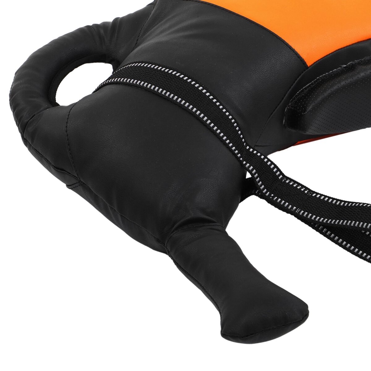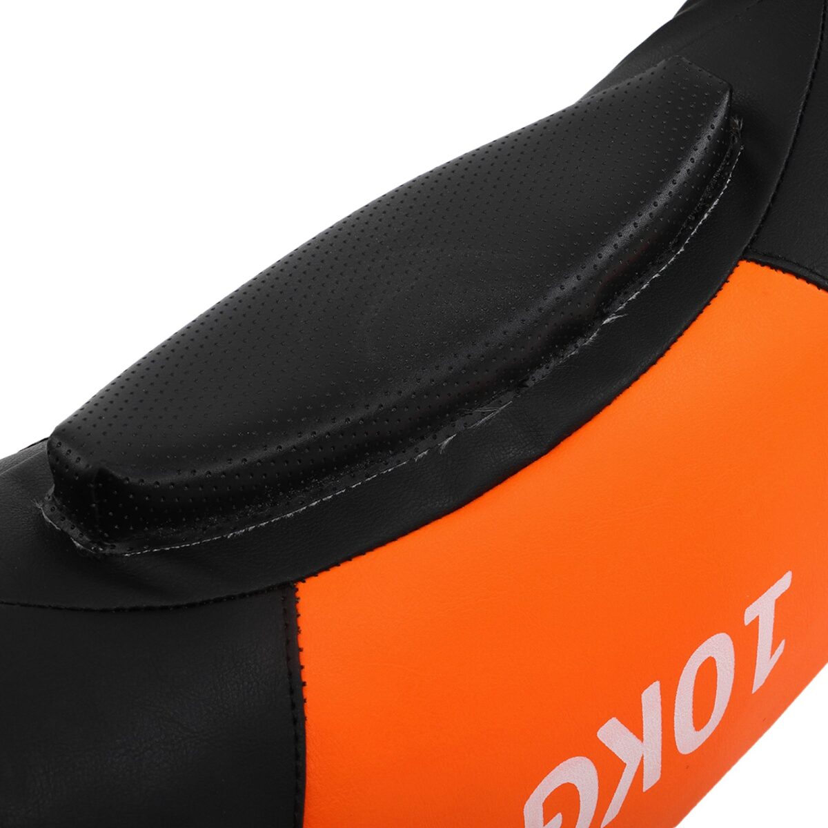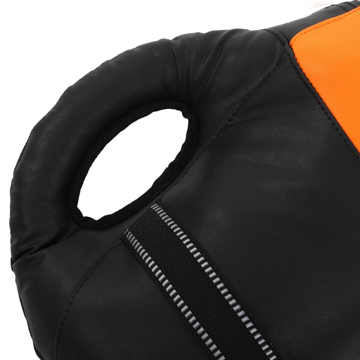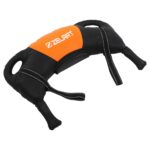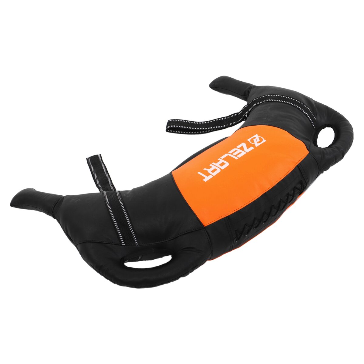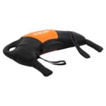 Форма болгарского мешка позволяет захватывать его в четырех местах в зависимости от упражнения, которое вы выполняете. В качестве материала чехла производитель использовал поливинилхлорид, который не боится влаги, а также легко моется. Чехол наполнен металлическими шариками, которые придают мешку веса.