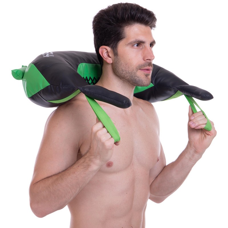 Также к мешку пришиты ремни из полиэстера и три закрытые рукояти на тыльной стороне. Это расширяет список упражнений, которые с ним можно выполнять – по сути, с ним одним можно проработать мускулатуру всего тела.