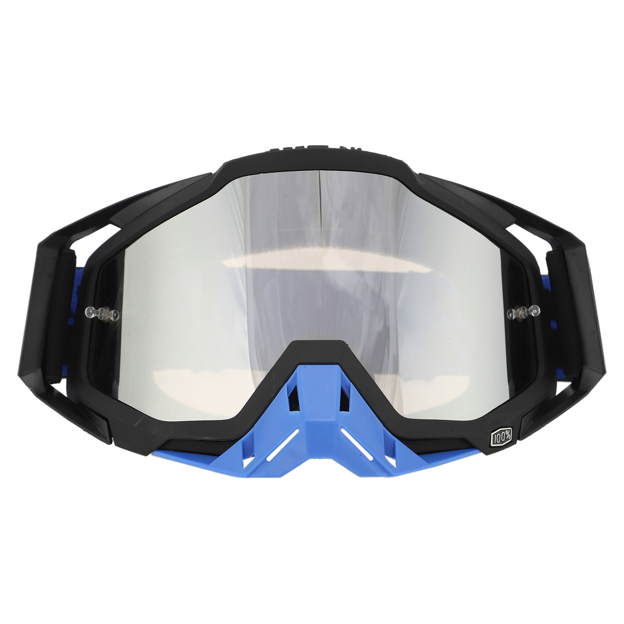 Мотоочки маска кроссовая 100%  оснащены линзами из высококачественного поликарбоната (PC), который обеспечивает исключительную защиту от ударов и царапин. Линзы имеют зеркальное покрытие, обеспечивающее повышенную защиту от яркого солнечного света и отблесков. Кроме того, линзы имеют поляризацию, которая снижает отражения и повышает контрастность видимого изображения.