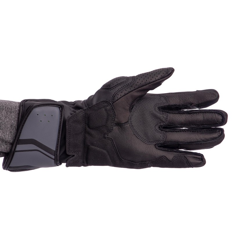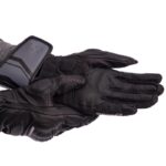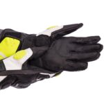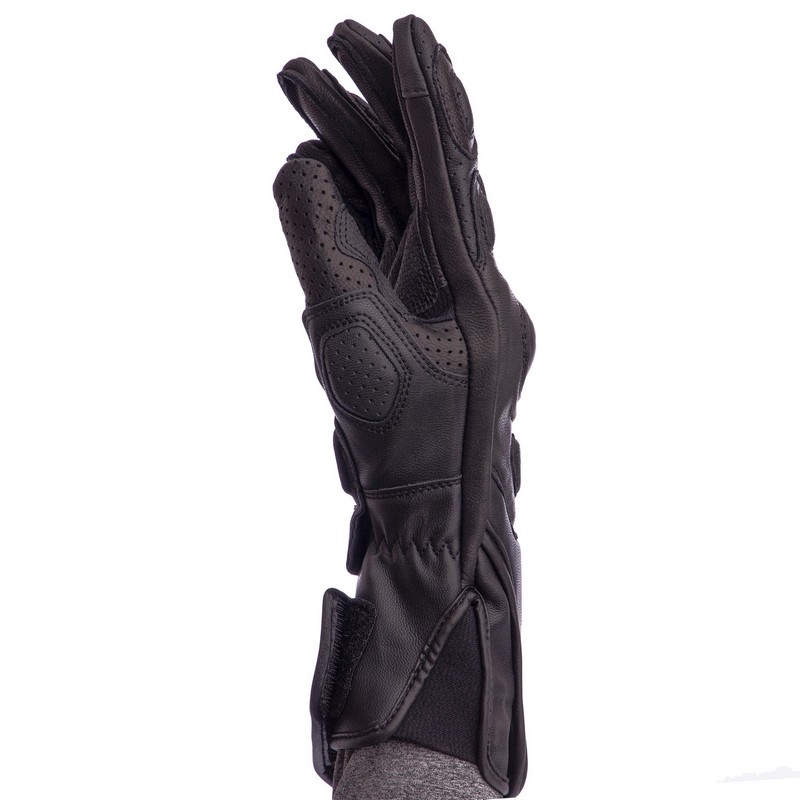 Перчатки изготовлены из натуральной кожи. Пальцы защищены карбоновыми накладками. Они препятствуют травмам в случае падения.