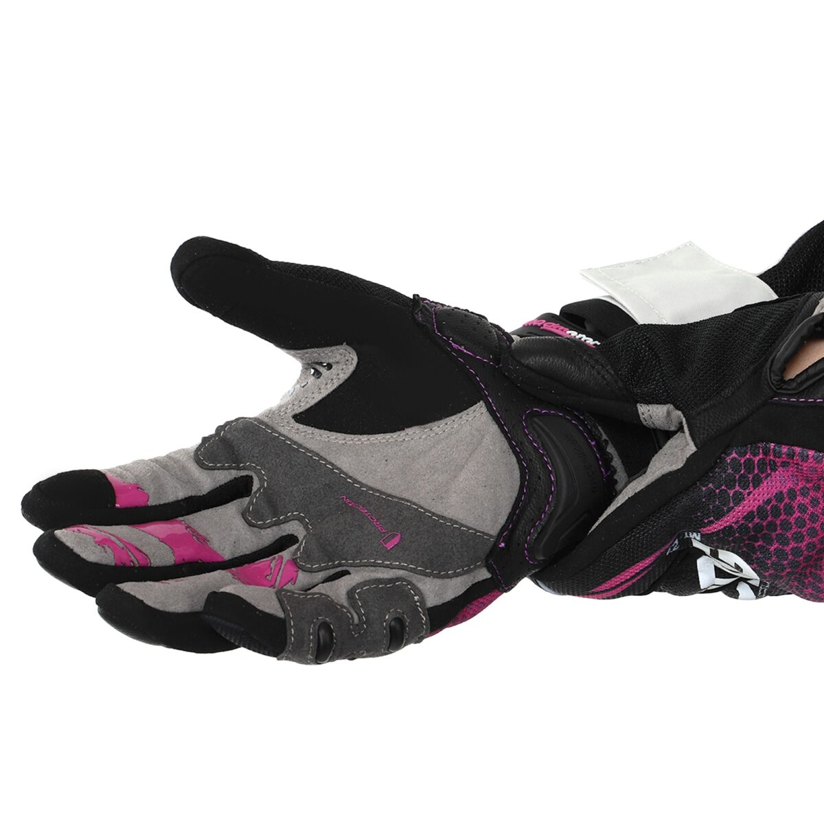 Перчатки изготовлены из прочного полиэстера, устойчивой к износу кожи и качественной super fabric, что обеспечивает оптимальную защиту рук. Накладки из полиуретана (PU) на костяшках пальцев и нижней части ладони, а также на пальцах, обеспечивают дополнительную защиту в случае падения или столкновения. Вставки на ладонях предотвращают износ материала, повышая долговечность перчаток.