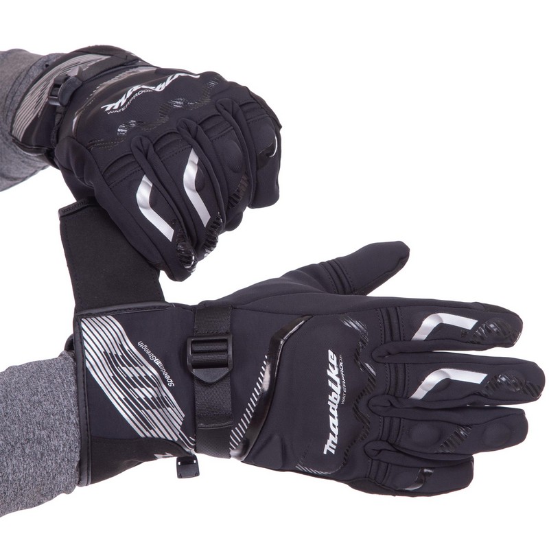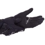 Зимние высокие перчатки для катания на мотоцикле изготовлены из полиэстера. Экипировка защищает не только от холода, она также защищает от травм. В мотоперчатки вшиты защитные аппликаторы. Они прикрывают костяшки и фаланги пальцев.