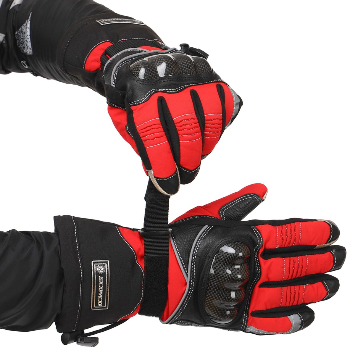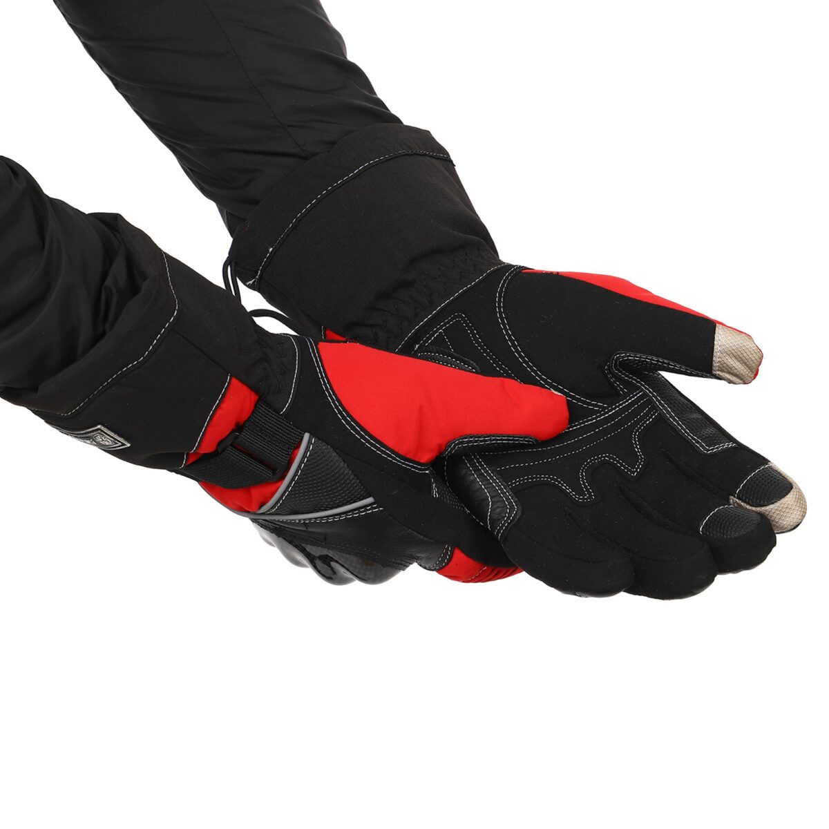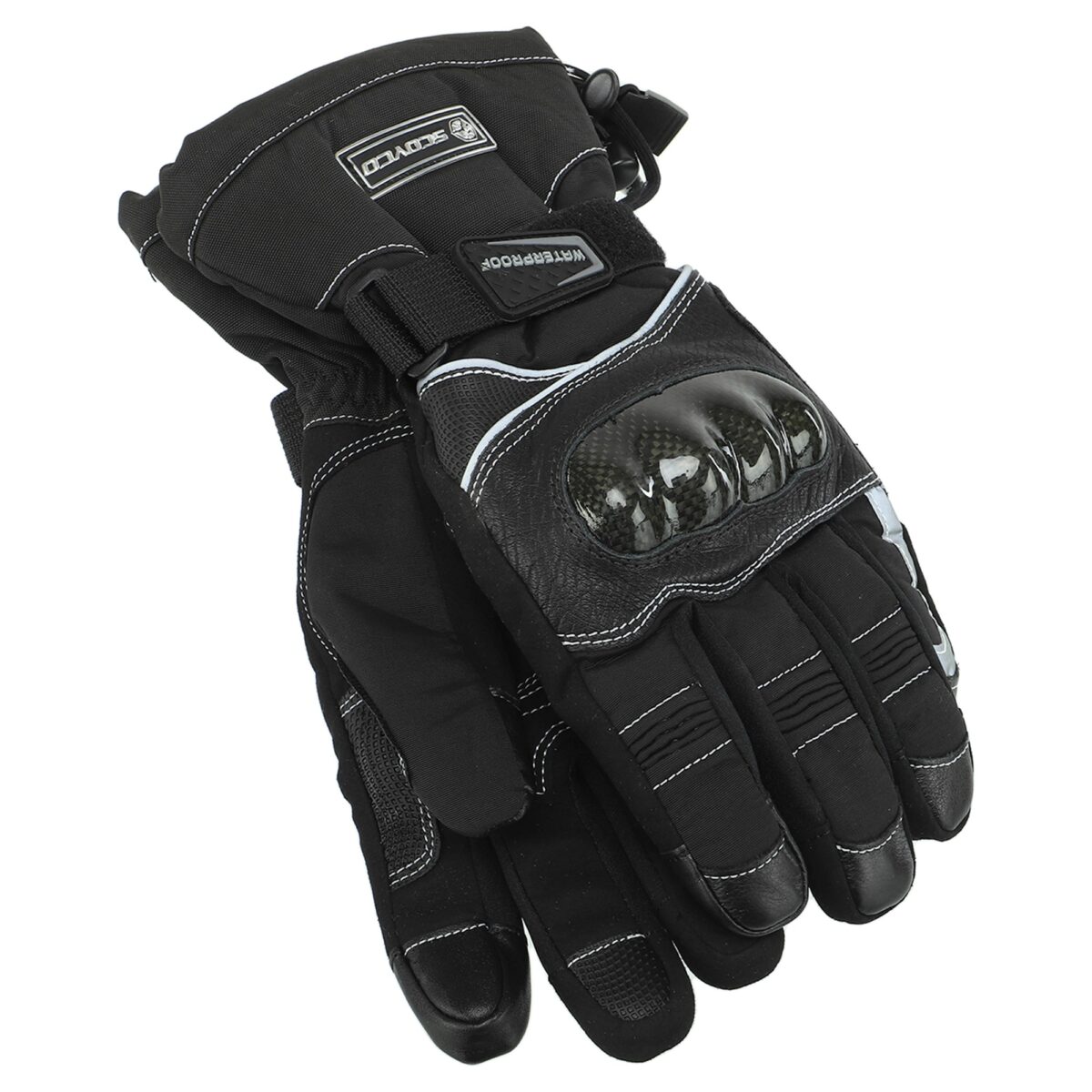 Для изготовления мотоперчаток используются высококачественные натуральные и синтетические материалы – полиэстер, поливинилхлорид (PVC). Благодаря такой комбинации они отличаются лёгкостью, которая сочетается с невероятной прочностью на раздир и устойчивостью к износу. Помимо этого они не промокают, в них не жарко летом и не холодно зимой. Суставы (костяшки) пальцев прикрыты защитной накладкой из высокопрочного карбона. Между большим пальцем и ладонью перчатки вшита V-образная вставка с текстурированной поверхностью, которая добавляет хвату надёжности.