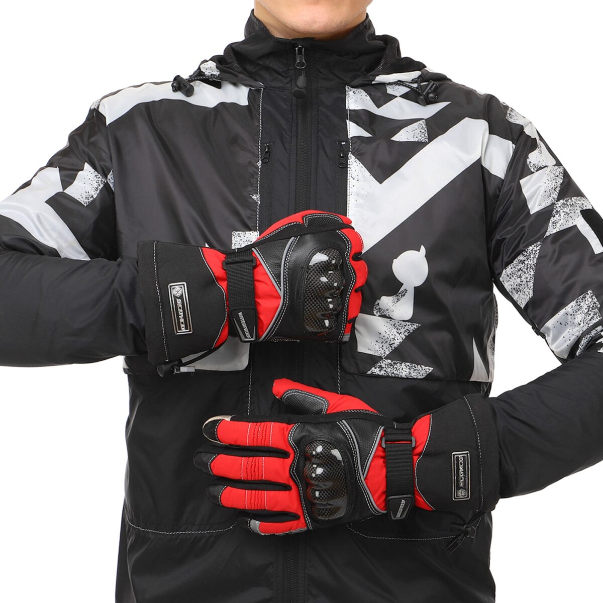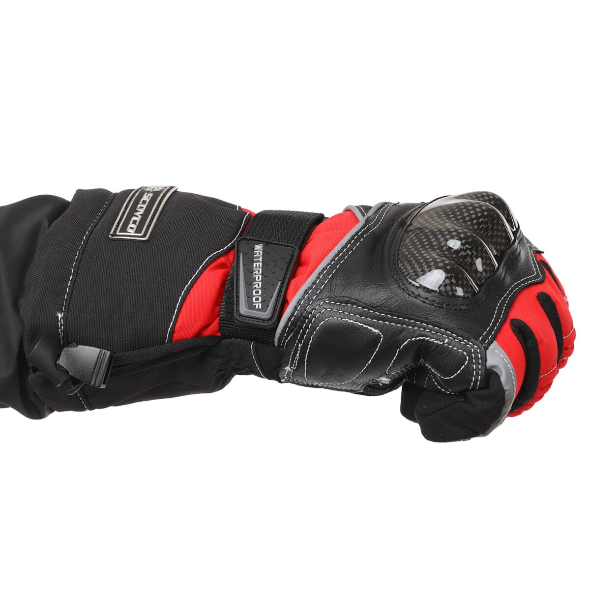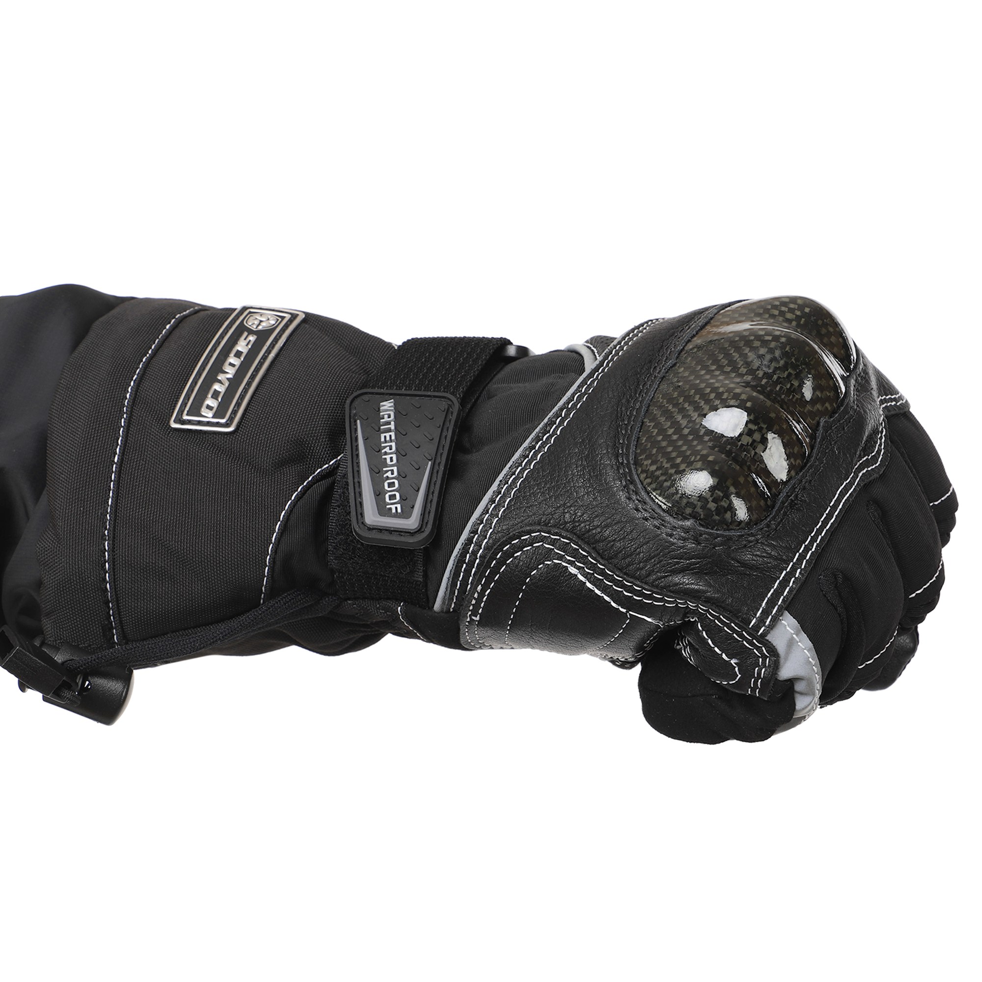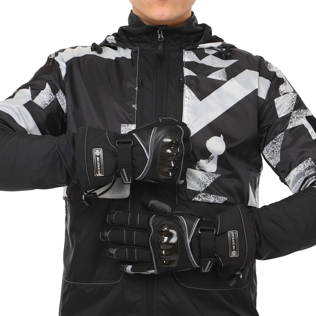 Для изготовления мотоперчаток используются высококачественные натуральные и синтетические материалы – полиэстер, поливинилхлорид (PVC). Благодаря такой комбинации они отличаются лёгкостью, которая сочетается с невероятной прочностью на раздир и устойчивостью к износу. Помимо этого они не промокают, в них не жарко летом и не холодно зимой. Суставы (костяшки) пальцев прикрыты защитной накладкой из высокопрочного карбона. Между большим пальцем и ладонью перчатки вшита V-образная вставка с текстурированной поверхностью, которая добавляет хвату надёжности.