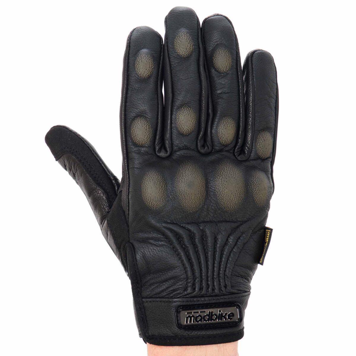 Кожаные защитные перчатки для катания на мотоцикле защищают от травм. Они изготовлены из натурального материала и усиленны пластиковыми вкладышами. Вкладыши берут на себя удар в случае падения.