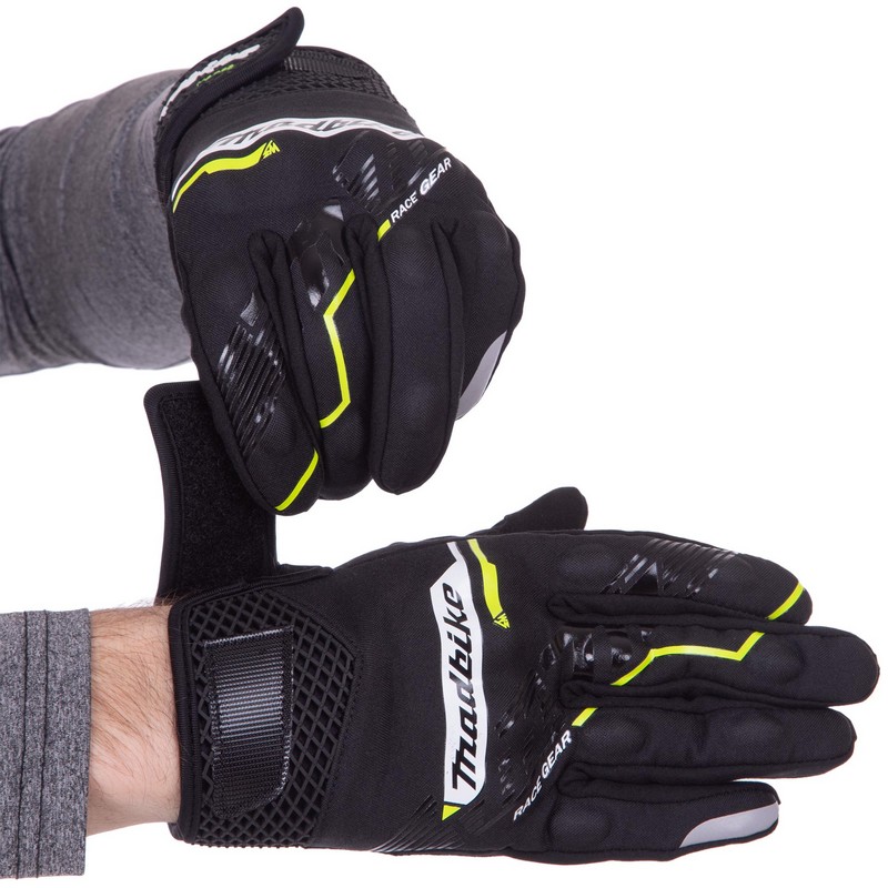 В мотоперчатки вшиты защитные вкладыши. Они не мешают управлять мотоциклом и не ограничивают подвижность.