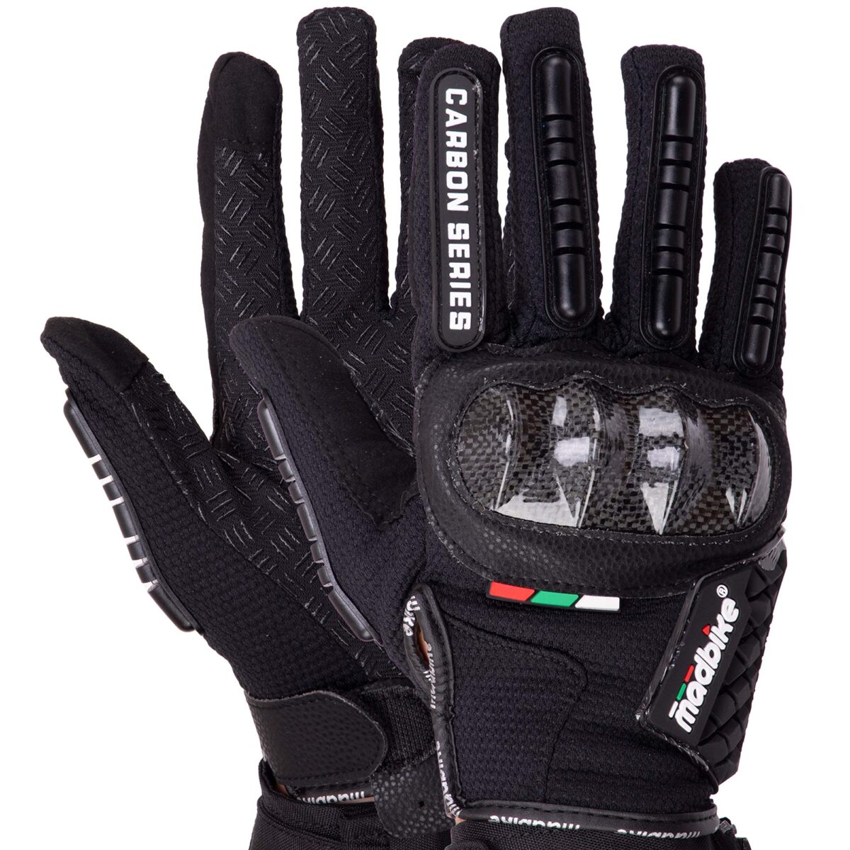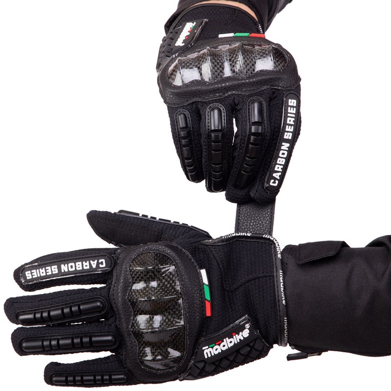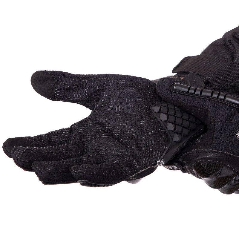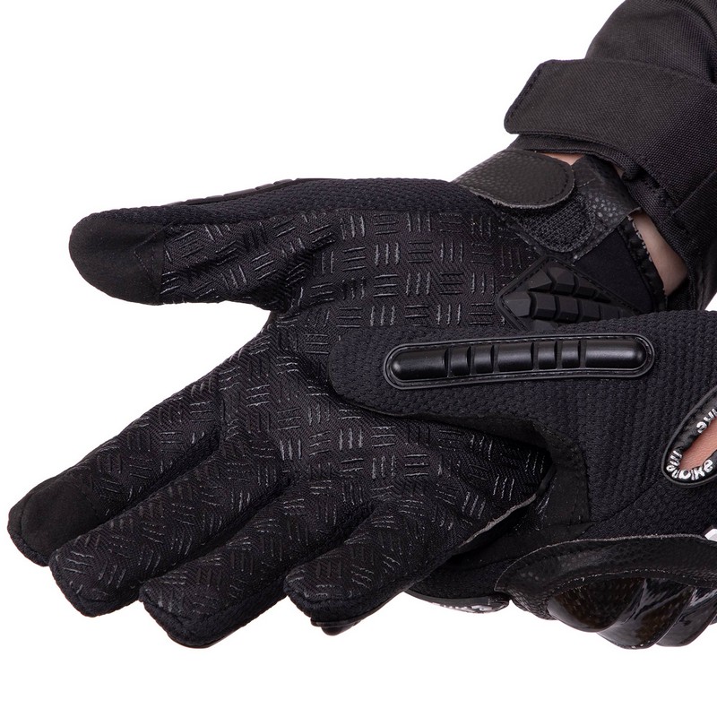 У этой модели в составе есть полиэстер и поливинилхлорид (PVC). Эти материалы позволят свободно сжимать ладонь и хорошо чувствовать рычаги управления. Легко и быстро фиксируются благодаря ремешку-липучке. Точечное покрытие на ладони не даст рукам скользить. На подушечках пальцев есть накладки, которые позволяют пользоваться сенсорным телефоном, не снимая перчаток. Защитные вставки на внутренней стороне ладони, а также протекторы на пальцах и костяшках не допустят вывихов, переломов, ушибов.