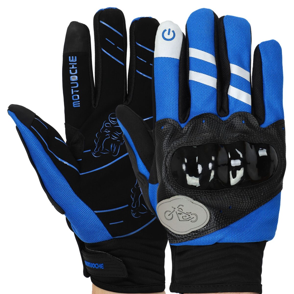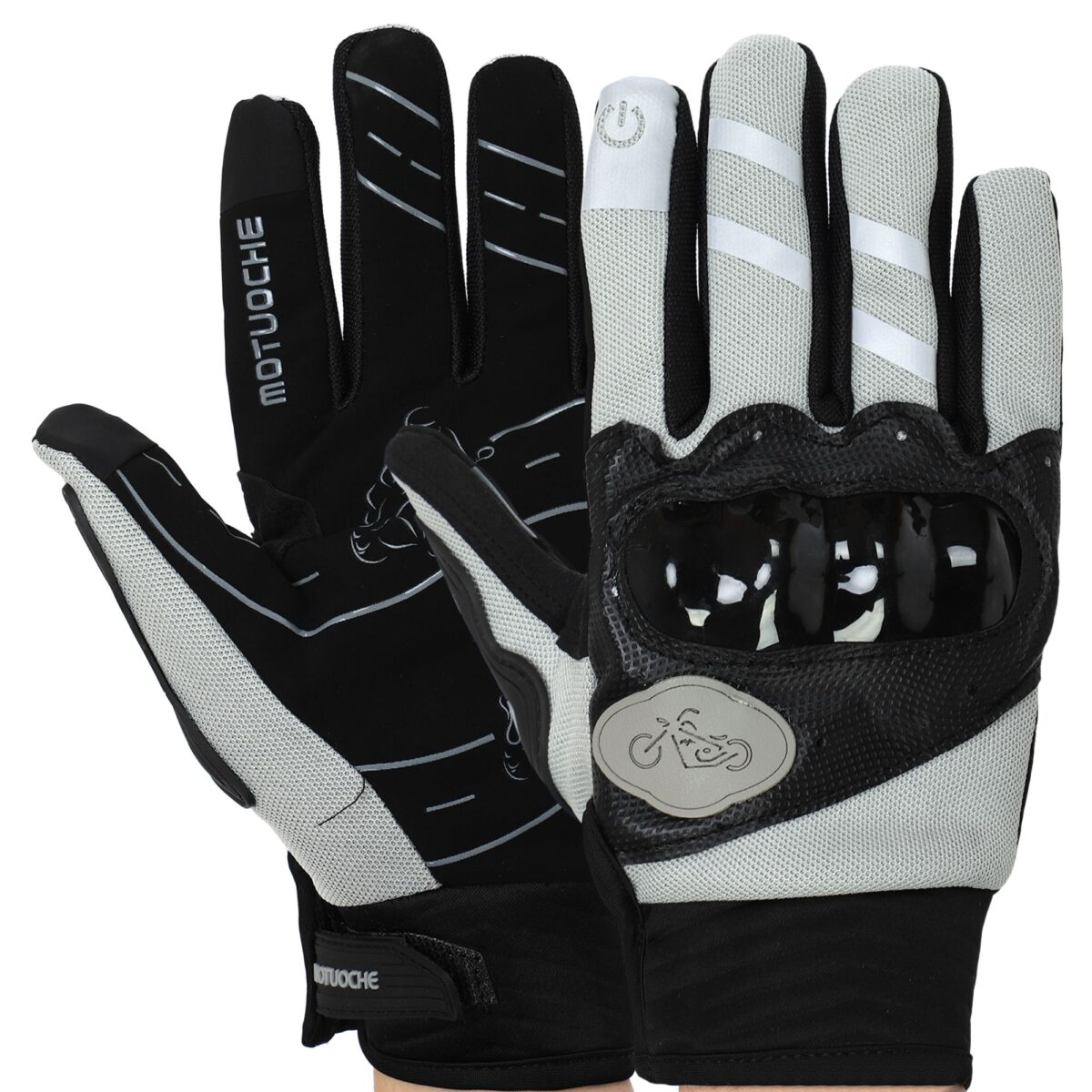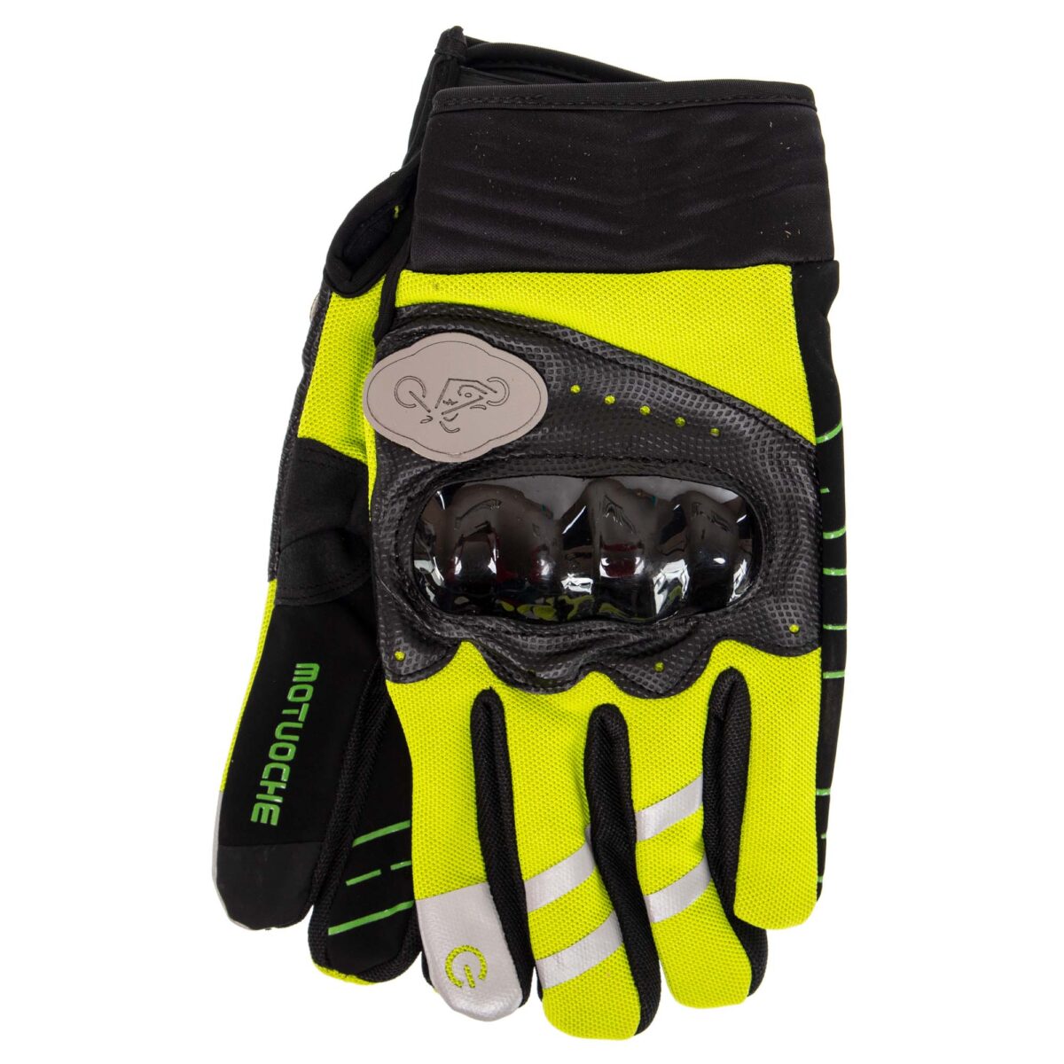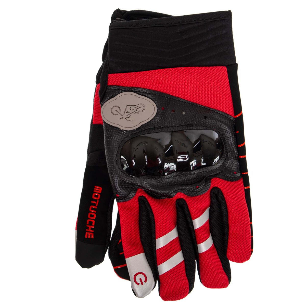 Мотоперчатки выполнены из высококачественного материала, включая полиэстер и полиуретан, обеспечивая идеальный баланс между прочностью и гибкостью. Специальные накладки из полиуретана на костяшках пальцев гарантируют дополнительную защиту в случае падения или столкновения. Кроме того, на кончиках пальцев имеется специальный материал Touch screen, позволяющий использовать сенсорные устройства без необходимости снимать перчатки.