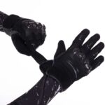 Кожаные защитные перчатки для катания на мотоцикле защищают от травм. Они изготовлены из натурального материала и усиленны пластиковыми вкладышами. Вкладыши берут на себя удар в случае падения.