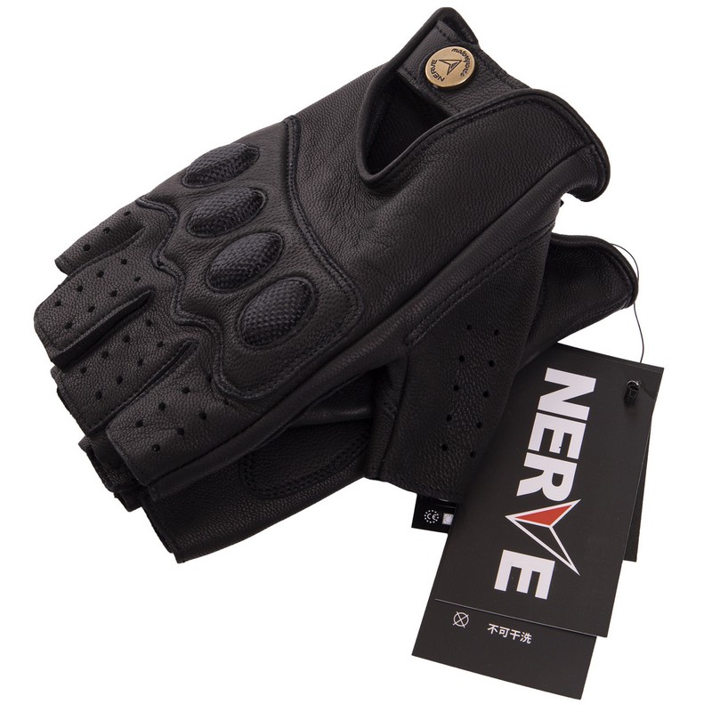Короткие перчатки от популярного производителя мотоэкипировки NERVE изготовлены из натуральной кожи. Внутри перчатка изготовлена из полиэстера. Синтетический материал хорошо отводит от тела влагу и не перегревает руки. Пальцы рук открыты на 1/2.