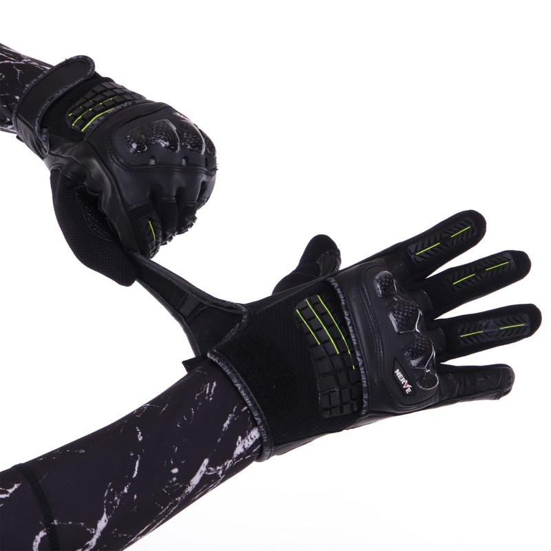 Кожаные защитные перчатки для катания на мотоцикле защищают от травм. Они изготовлены из натурального материала и усиленны пластиковыми вкладышами. Вкладыши берут на себя удар в случае падения.