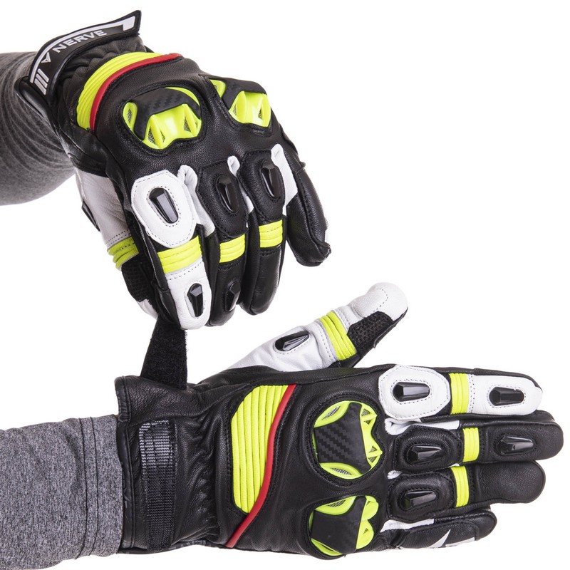 Всесезонные перчатки для мотокросса защищают руки мотоциклиста от травм в случае падения. Оригинальные перчатки NERVE не продуваются и не промокают. Жесткие вставки защищают суставы пальцев от повреждений.