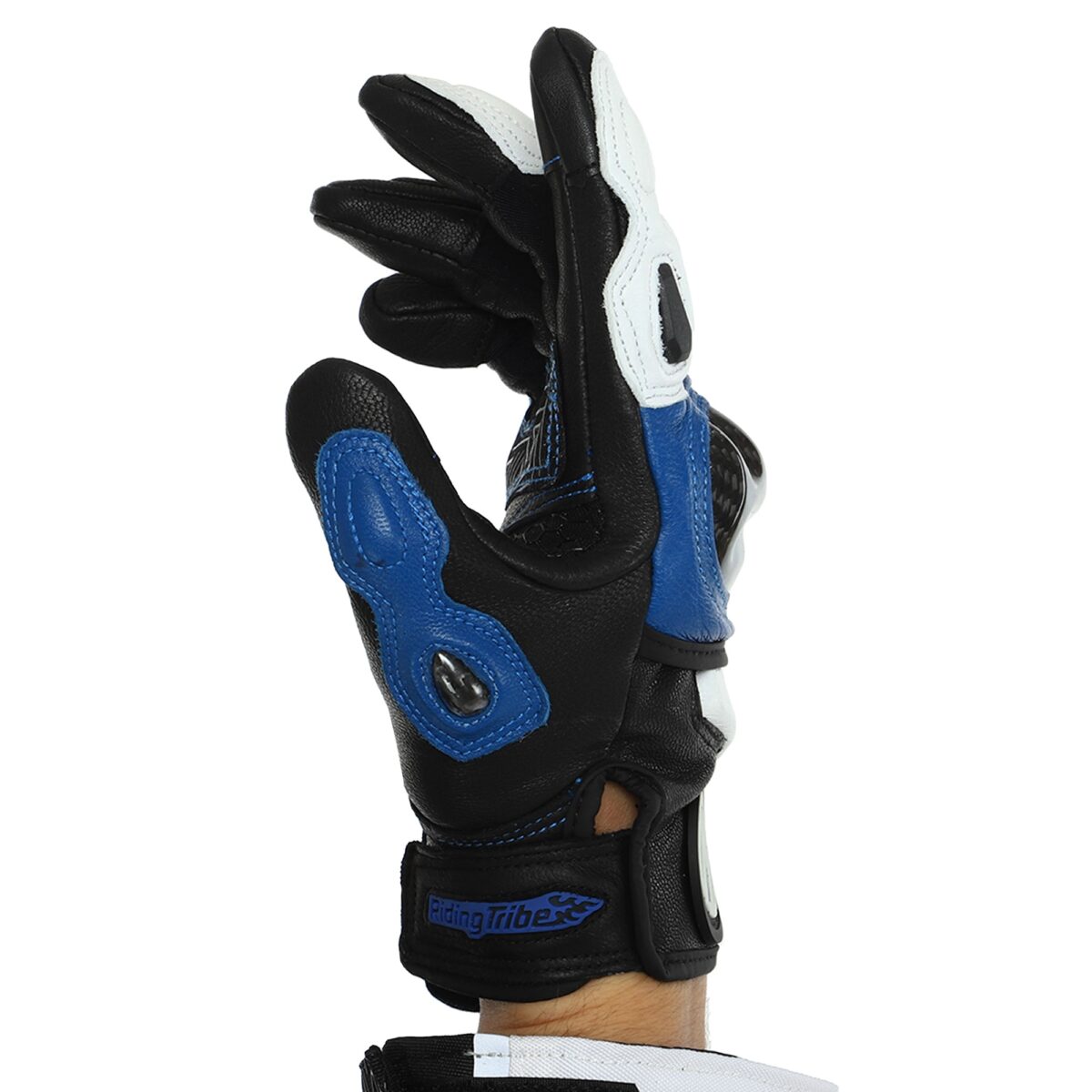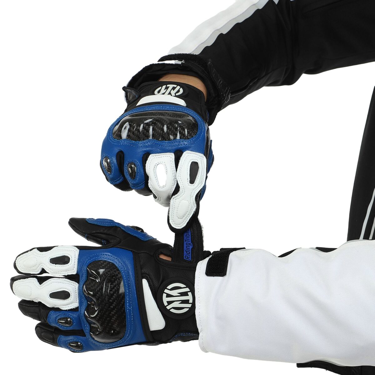 Мотоперчатки RIDING TRIBE изготовлены из кожи, что придает им прочность и долговечность, а также имеют вставки из карбона для дополнительной защиты ключевых областей рук. Модель обладает эргономичным дизайном, который обеспечивает идеальную посадку на руке, не ограничивая движения. Они имеют регулируемые застежки на липучке для обеспечения надежной посадки и комфортной фиксации на запястье. Внутренняя подкладка выполнена из мягкого материала для дополнительного комфорта и впитывания влаги.