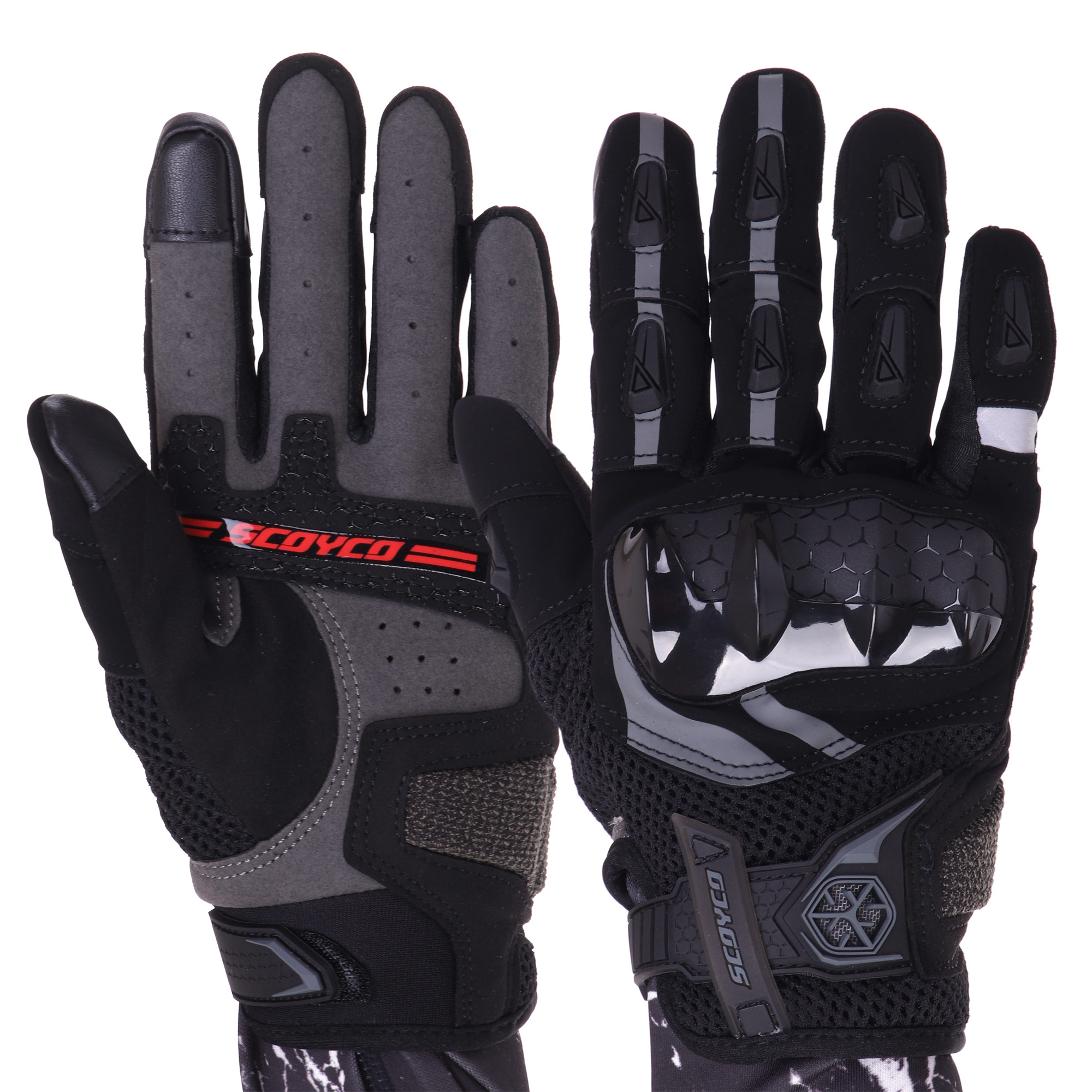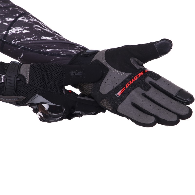 Оригинальные перчатки от именитого производителя SCOYCO защищают руки мотоциклиста при падениях. Перчатки закрывают суставы пальцев и основание ладони.