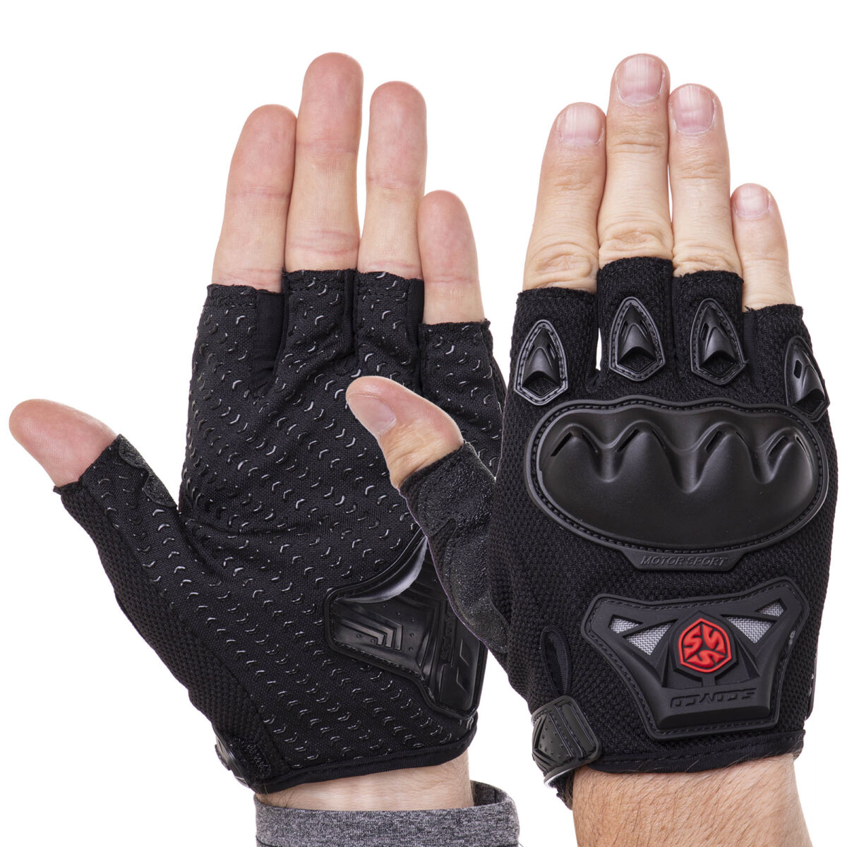 Короткие летние перчатки SCOYCO предназначены для катания на кроссовом мотоцикле. Перчатки закрывают только 1/3 часть пальцев. Они не перегревают руку.