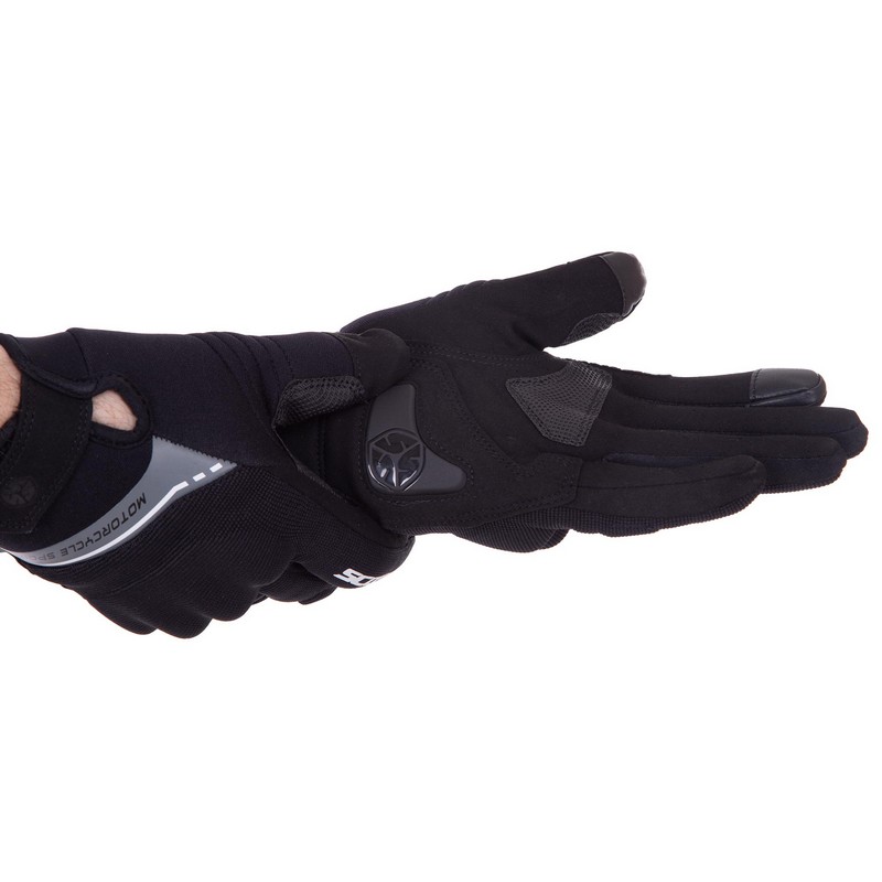 Перчатки изготовлены из полиэстера, в них есть жесткие вставки для эффективной защиты. Чтобы экипировка надежно защищала мотоциклиста, нужно выбирать ее по размеру.