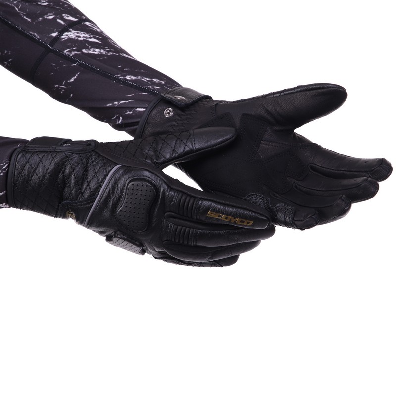 Оригинальные мотоперчатки SCOYCO изготовлены из натуральной кожи. Экипировка защищает от падений, ветра и влаги. Перчатки подбираются по размеру, на руке фиксируются с помощью кнопки.
