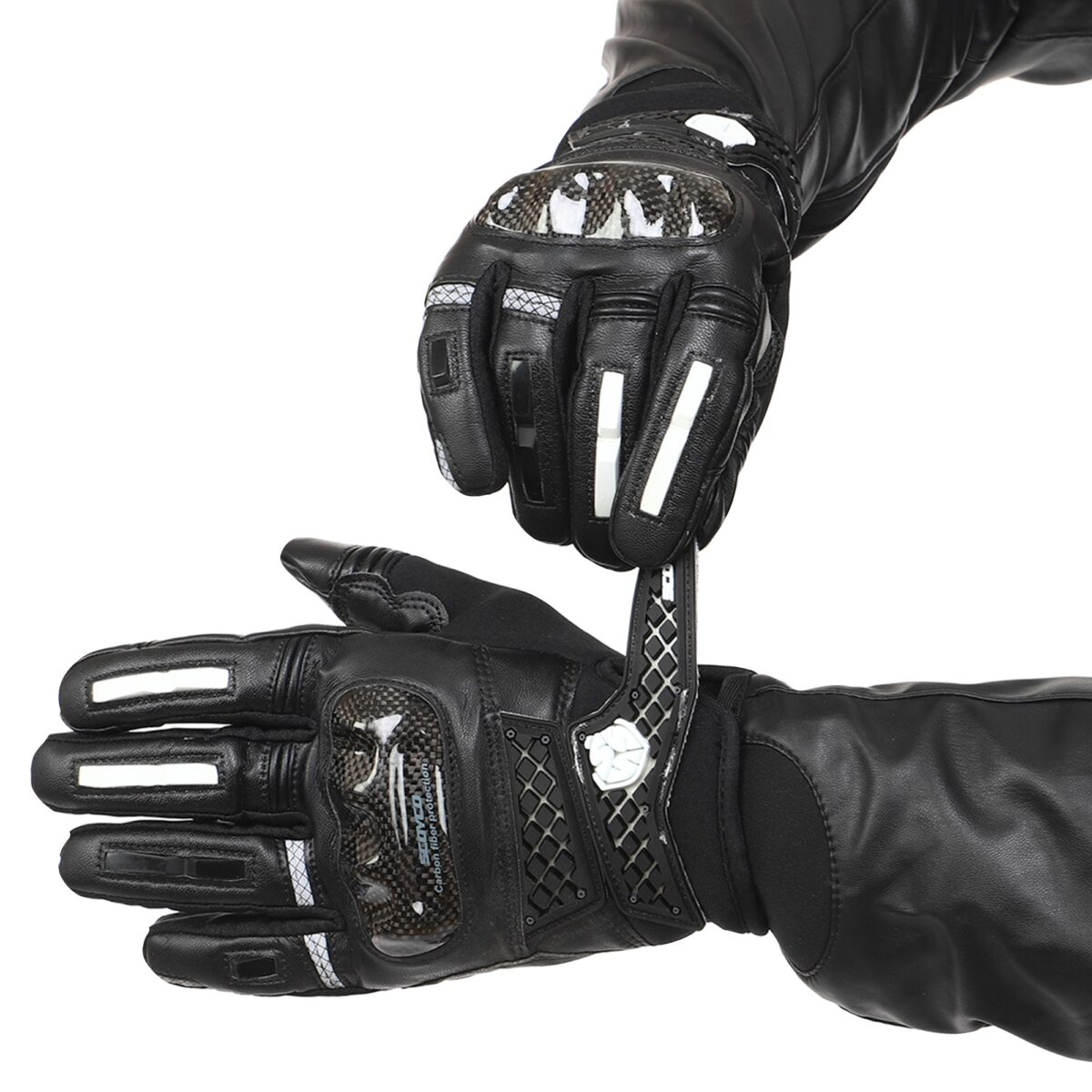 Мотоперчатки SCOYCO Waterproof Sensor Touch изготовлены из кожи, полиэстера и микрофибры, они представляют собой устойчивую и долговечную конструкцию. Одной из ключевых характеристик данных перчаток является наличие карбоновых накладок на костяшках пальцев. Это обеспечивает надежную защиту в случае падения или столкновения, гарантируя безопасность ваших рук в экстремальных ситуациях. Эта модель также оснащена touch screen-материалом на кончиках пальцев, что позволяет вам использовать сенсорные устройства, не снимая их. Важным элементом конструкции являются вставки на ладонях, которые обеспечивают защиту от износа и увеличивают сцепление с рулем мотоцикла. Кроме того, наличие защиты на костяшках пальцев, на нижней части ладони и на пальцах гарантирует полную безопасность рук даже в самых сложных условиях. Регулируемая липучка на запястье обеспечивает индивидуальную посадку и комфорт, а светоотражающие полосы делают вас более видимыми на дороге в условиях низкой освещенности.