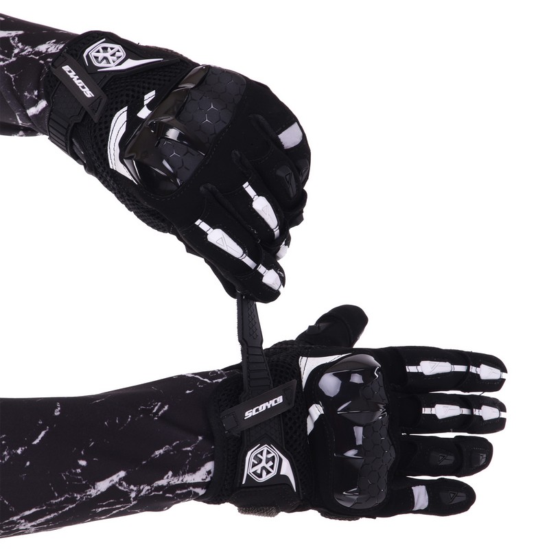 Перчатки прикрывают пальцы полностью. Для дополнительного охлаждения на пальцах рук и ладонях есть отверстия.