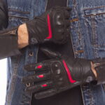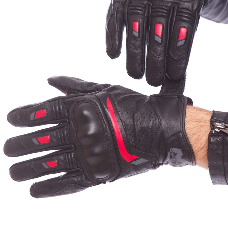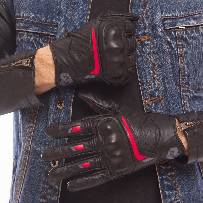 Защитные перчатки изготовлены из кожи. Они имеют стильный дизайн и хорошо сочетаются с другой экипировкой мотоциклиста.