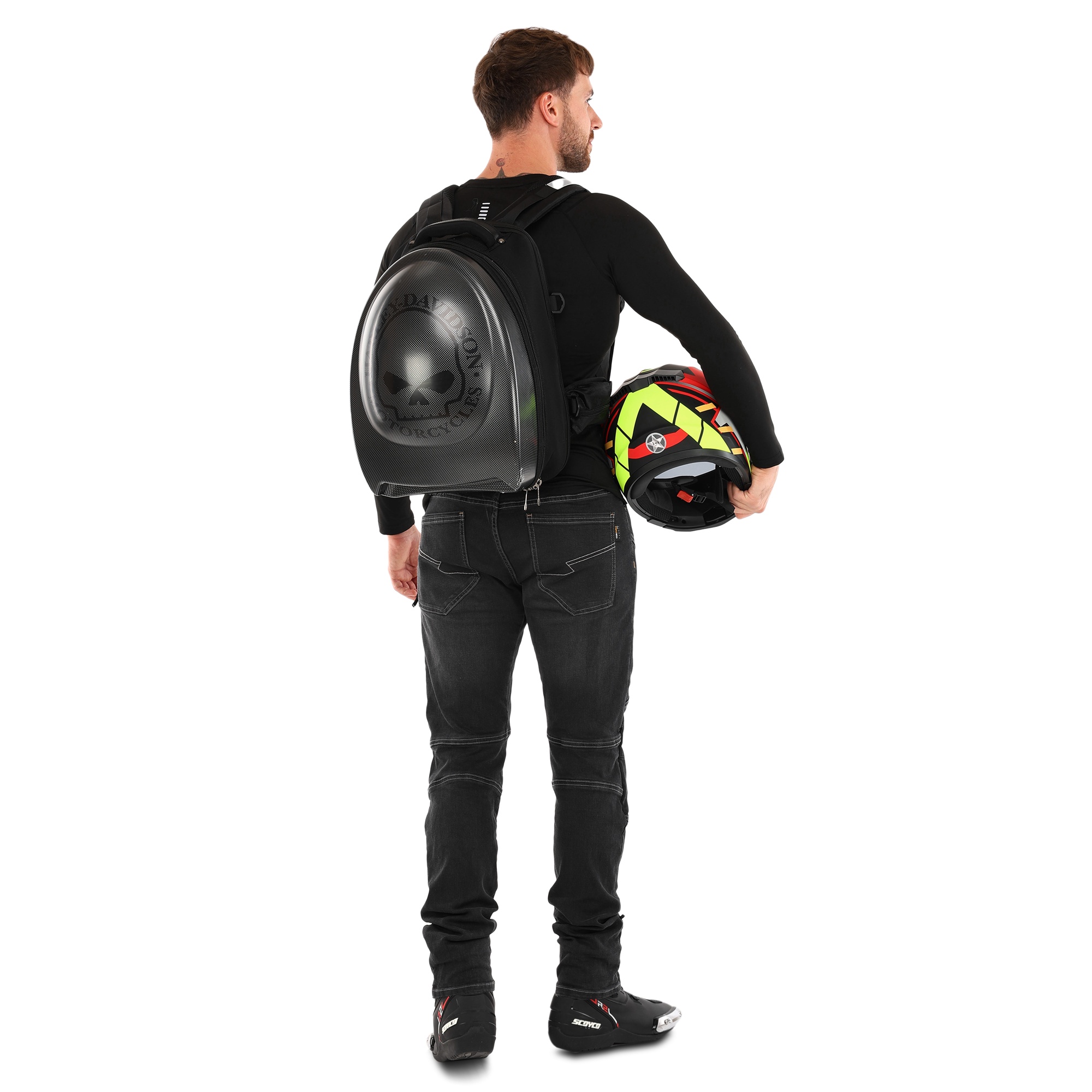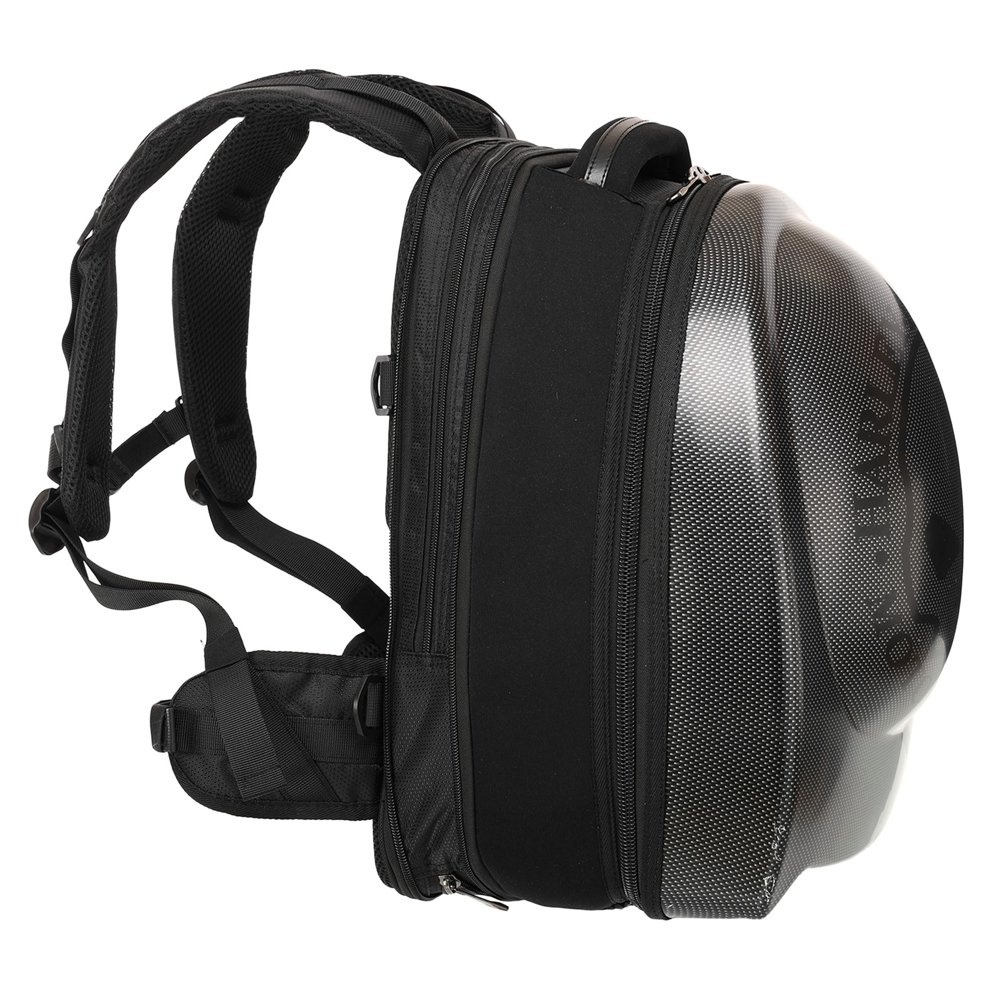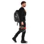 Большой моторюкзак на 23 л подходит для дальних поездок на мотоцикле. Моторюкзак надевается на плечи и фиксируется ремнями с пластиковыми застежками.