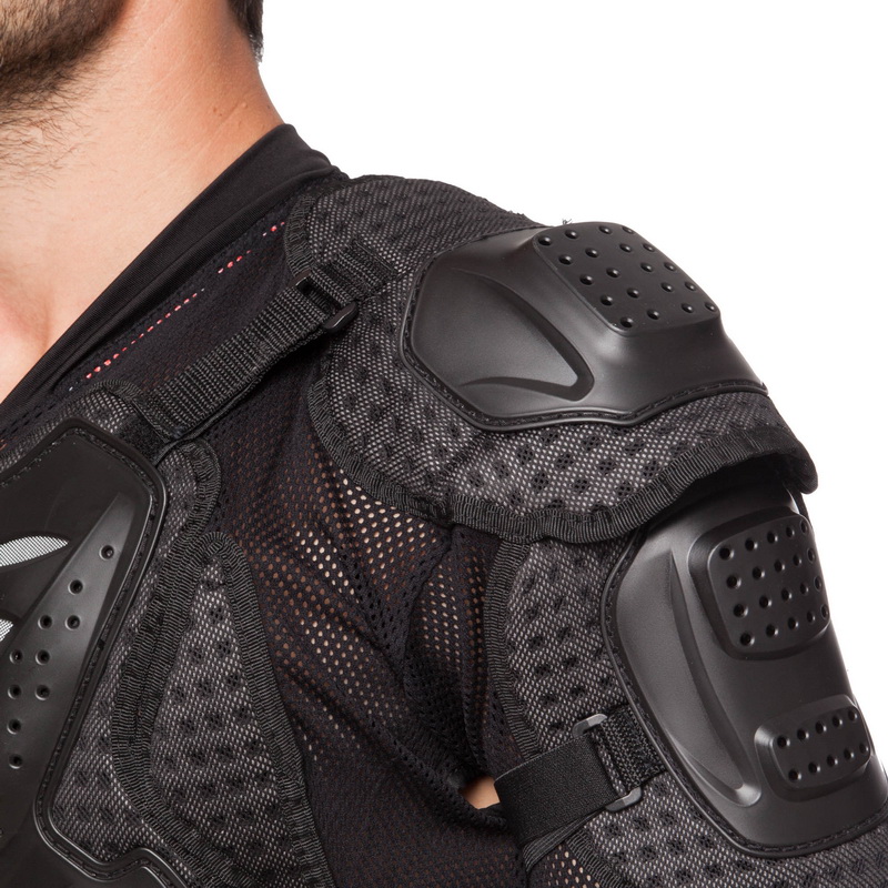 - Регулировочные механизмы на фиксирующих ремнях позволяют подогнать защиту точно по фигуре.