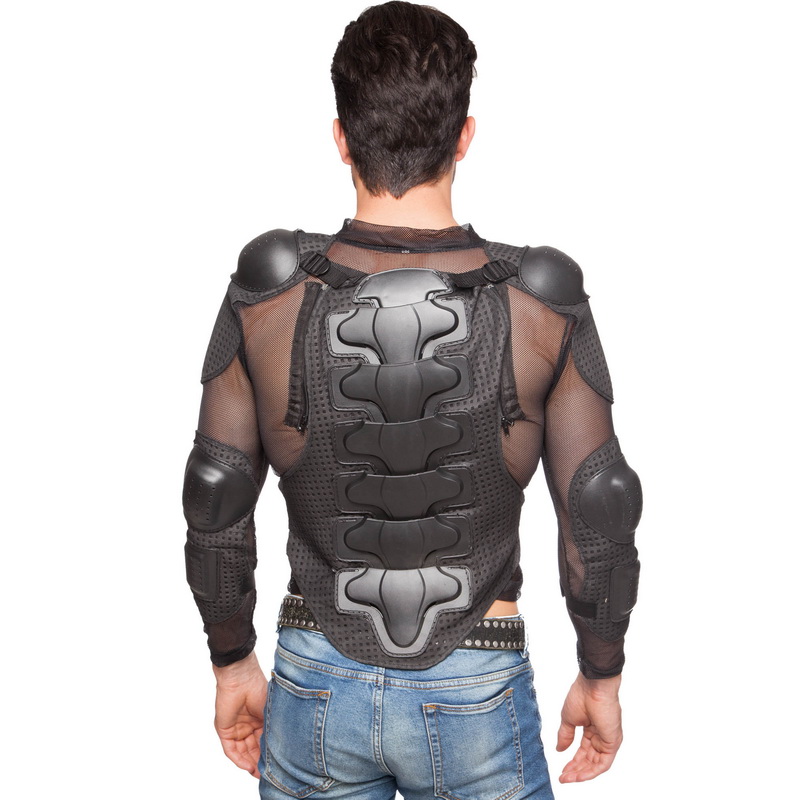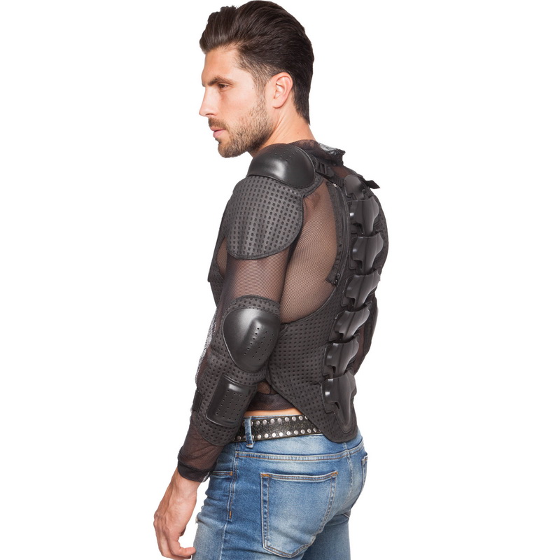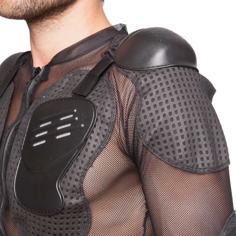 Защитная мотоэкипировка изготовлена из полиэстера и сетчатой ткани. Накладки для плечей, груди, спины и локтей изготовлены из сетчатой ткани. Ткань пропускает воздух и позволяет телу дышать. Потому экипировку можно использовать даже в жаркое время года.
