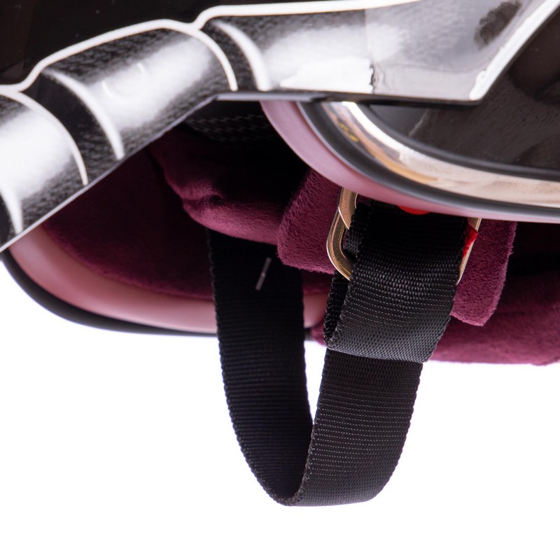 На голове шлем фиксируется с помощью ремешка на подбородке.