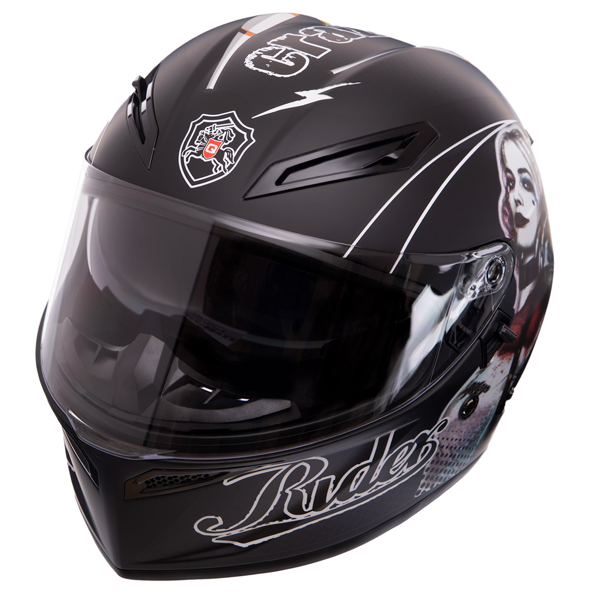 QKE HARLEY QUINN представляет собой высококачественный интегральный мотошлем, спроектированный для обеспечения максимальной защиты головы мотоциклиста во время поездок. Он идеально подходит для любителей мото, ценящих безопасность, комфорт и оригинальный стиль в одном образе.