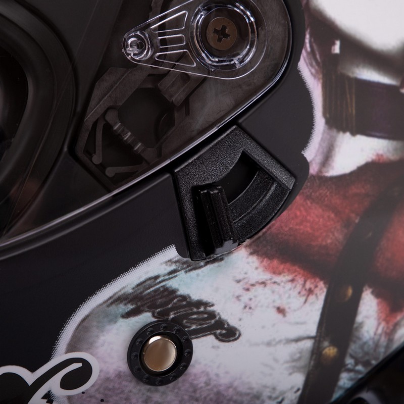Этот мотошлем представляет собой гармоничное сочетание безопасности и эстетической привлекательности. Он выполнен в стильном черно-белом дизайне, который отражает особенности серии HARLEY QUINN, придавая образу мотоциклиста уникальную индивидуальность. Конструкция интегрального типа предоставляет полную защиту головы, включая лицо и подбородок, что делает этот шлем идеальным выбором для езды на высоких скоростях и в различных погодных условиях. Мотошлем QKE HARLEY QUINN изготовлен из прочного и легкого ABS пластика, который обеспечивает надежную защиту при столкновениях и ударах. Внутренний слой из EPS (экспандированный полистирол) способствует поглощению ударов, минимизируя возможные повреждения и травмы.