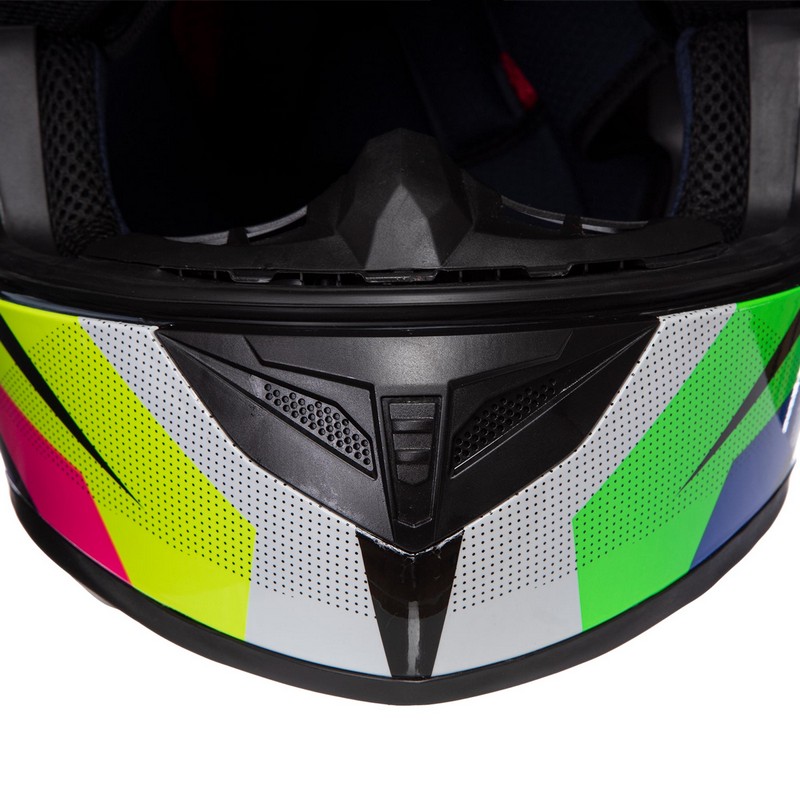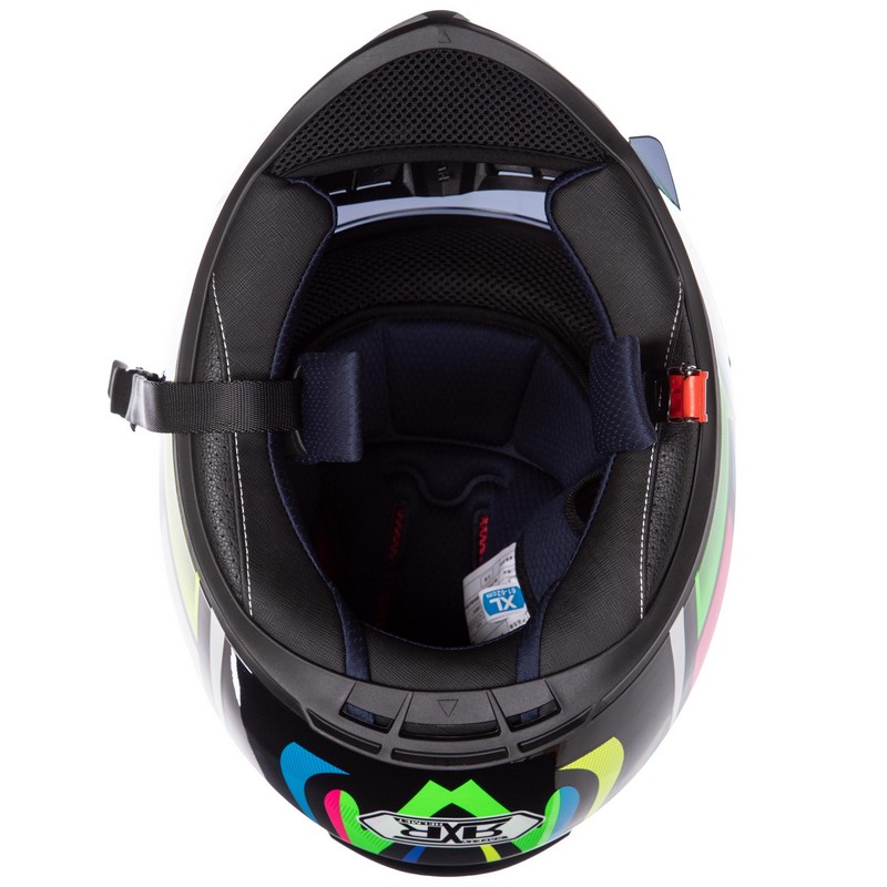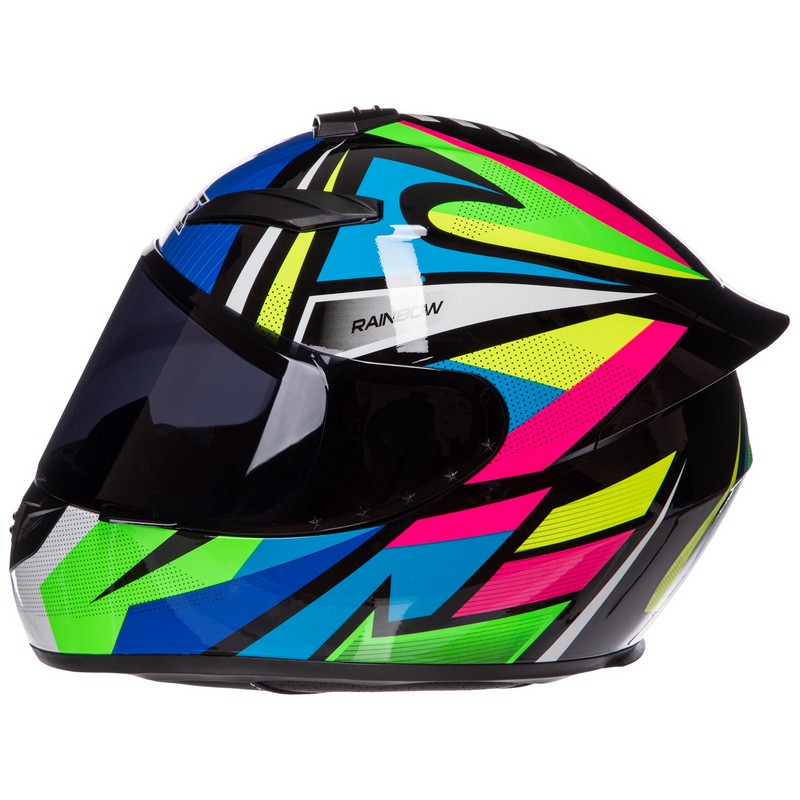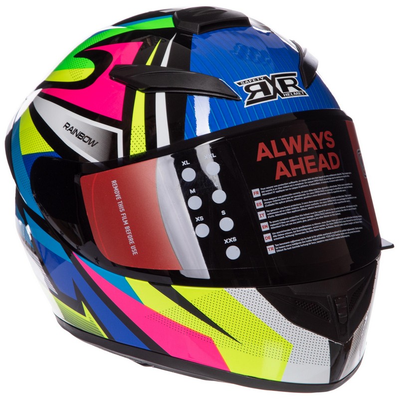 Мотошлем типа full face защищает все лицо и голову от удара в случае падения с мотоцикла. Защитная экипировка выбирается по размеру.