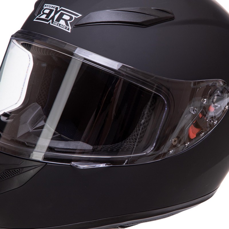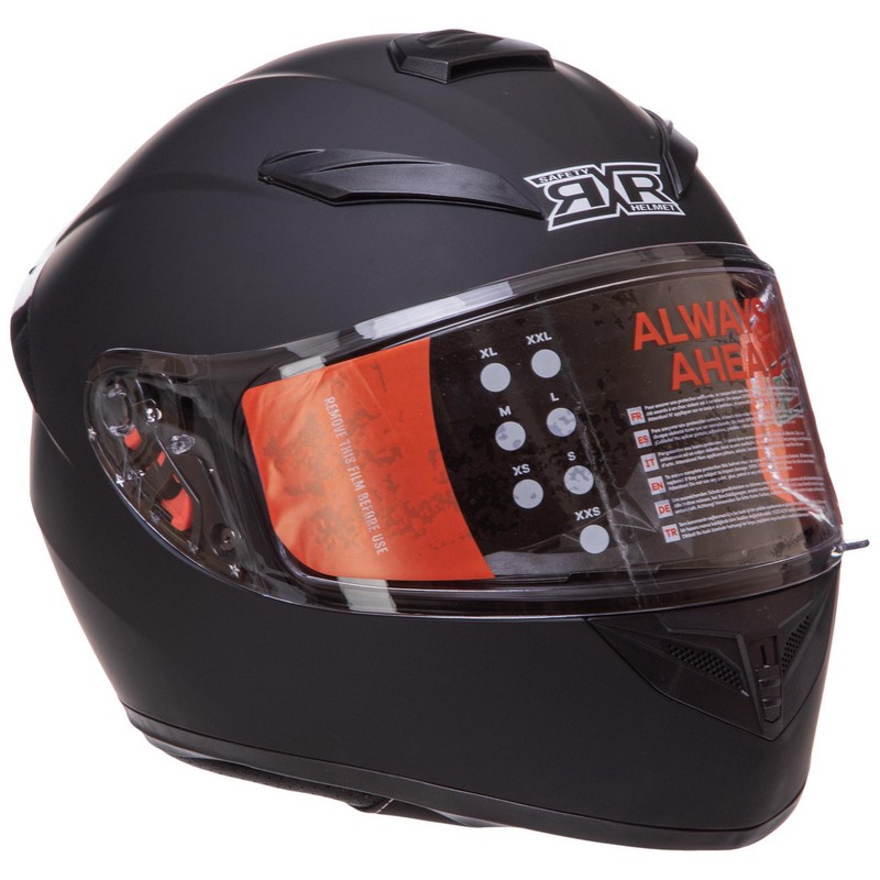Мотошлем типа full face защищает все лицо и голову от удара в случае падения с мотоцикла. Защитная экипировка выбирается по размеру.