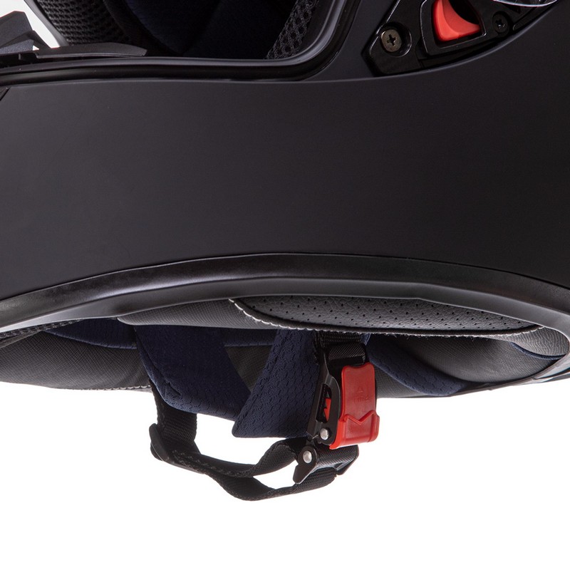 На подбородке шлем фиксируется с помощью ремней на застежке.
