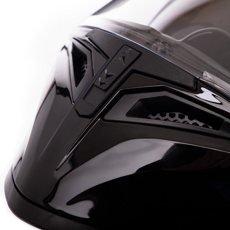 - Оснащен уникальной функцией модулярности, которая позволяет легко поднять переднюю часть шлема без необходимости его полного снятия.