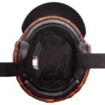 Шлем закрывает не только верх головы, а и уши. Внутри защитная экипировка закрыта мягким материалом и сетчатой тканью. Внутреннее покрытие впитывает влагу.